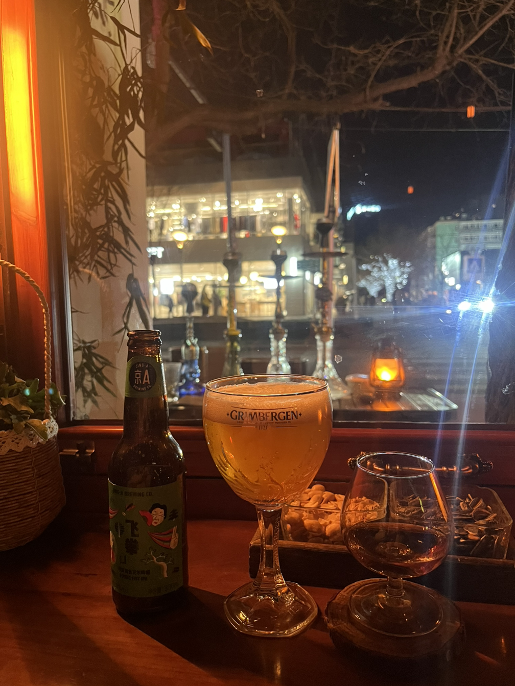 배불리 먹은 우리는 또다시 호텔로 걸어가기로 한다. 그곳에서 재정비 시간을 가진 다음, 베이징의 Night Life를 체험하러 나가기 위해서다. 고심 끝에 목적지로 고른 곳은 산리툰. 산리툰은 베이징에서 가장 세련된 동네이자, 밤문화가 발달한 지역이라고 한다. 오늘 밤 우리의 목적에 꼭 맞는 장소였던 것이다. 디디택시에서 내려 마주한 산리툰의 첫인상은 명품 브랜드가 즐비한, 누가 뭐래도 '핫'한 곳이었다. 우리가 당도한 시간이 10시 즈음이었음에도 불구하고 편집샵에서나 볼법한 옷가게들은 여전히 영업 중이었다. 이곳 산리툰에서는 물담배가 있는 작고 코지한 위스키바에서 발베니를 한잔 하고, 조금 더 시끌벅적하고 젊은 에너지가 넘치는 비어바에서 엑스트라 스트롱 비어를 마셨다. 10도짜리 작은 병맥주였는데, 먹는 동안 쓴 맛이 너무 강해서 다음부터 맥주는 엑스트라 스트롱은 피해야지 생각하며 한 모금 한 모금 쓴 맛을 목구멍 너머로 삼켰다.