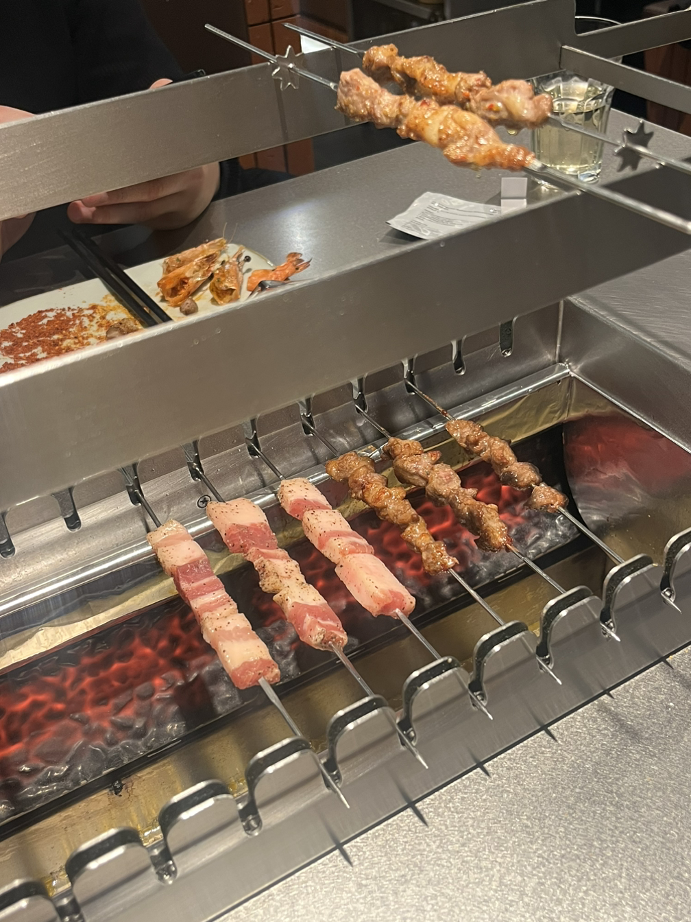 이 서비스 마인드는 양꼬치 굽기에서 그 정점에 이른다. 나오자마자 프로페셔널하게 화로에 얹어지는 건 물론, 적당한 굽기 상태에 맞춰 어디선가 짜잔 하고 등장한 담당 서버가 양꼬치를 우리 앞접시로 가져다준다. 사실 나는 양에서 나는 특유의 냄새 때문에 평소 양꼬치를 즐겨 먹지 않는다. 헌지우이치엔도 어느 정도 걱정을 안고 찾은 곳인데, 걱정이 무색해질 정도로 양 고기의 신선함이 느껴졌다. 양 냄새도 거의 나지 않는 수준이어서 까다로운 내 입맛에도 딱 맞았다.