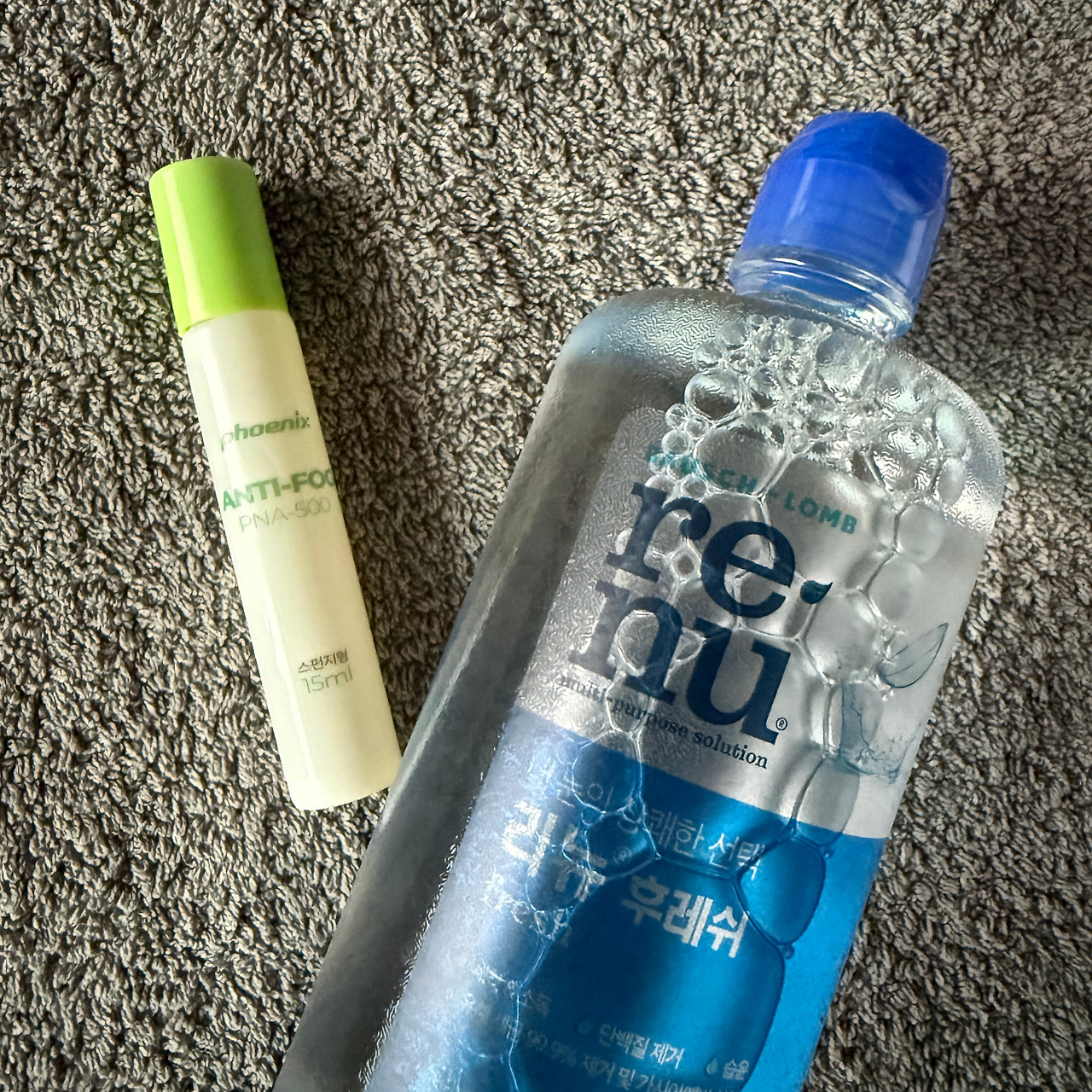 자꾸만 수경이 뿌옇게 돼서 검색해 보니, '수영 중 체온이 올라가면서 수온과의 온도차로 '김서림(요런 표현이 있다니!)'이 생기는 현상'이란다. '뜨거운 물로 헹구면 안 되고, 웬만하면 알은 건드리지 말라'는 사람이 있고, '습기 차면 안쪽을 살살 손으로 문지르면 된다'는 사람, '일반 렌즈 세척액인 'Re-nu(리뉴)'를 부어놓으면 된다'는 사람이 있었다. '안티포그제(김서림 방지제)는 스프레이 선호형과 스펀지 선호형, 두 부류로 나뉘고', '그냥 물로 씻으면 되고 잘 말리는 게 관건'이라는 사람도 있었다. 스펀지형 안티포그제를 하나 주문하고, 다이소에서 리뉴를 장만했다.