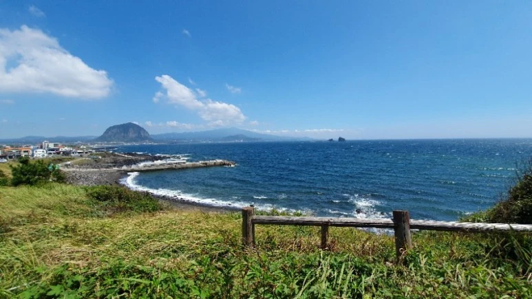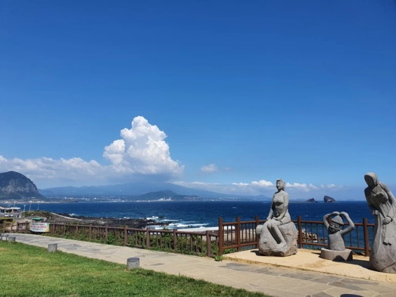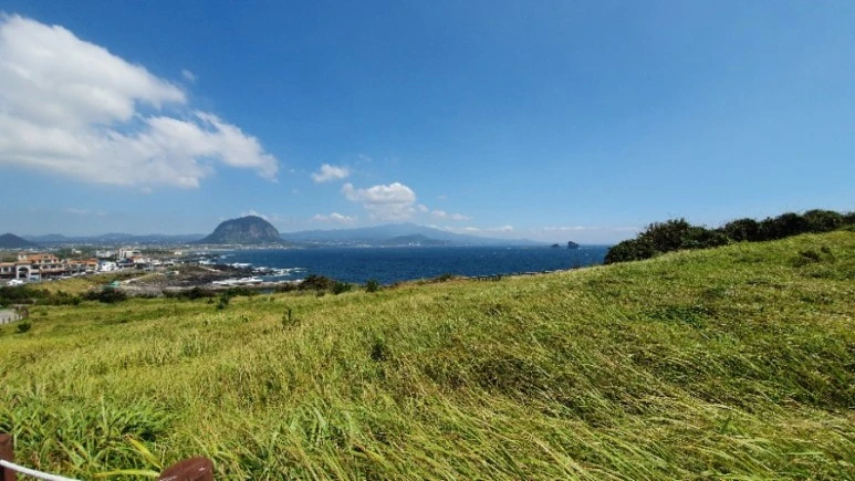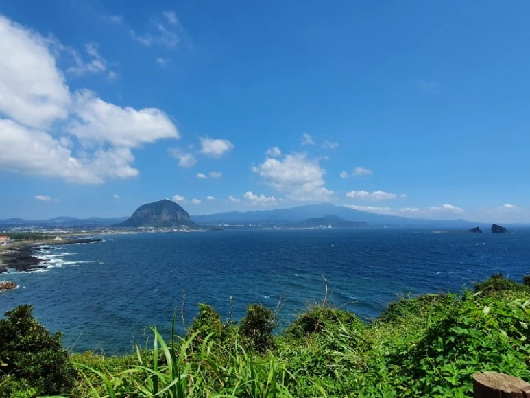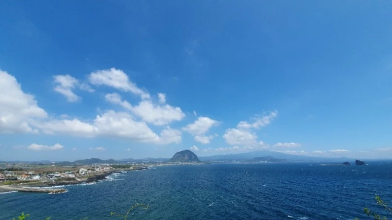 이날은 제주도에 태풍이 오고 있다는 뉴스에 걸맞게 쉴 새 없이 부는 바람 덕분에 한낮임에도 무척이나 시원하면서 한낮의 쨍한 해 덕분에 먼 곳까지 잘 보였고, 파란 하늘은 물론 바다까지 정말 더 푸르르게 빛나 제 마음속에 영원힌 남길만한 사진들을 남길 수 있는 날이었답니다.