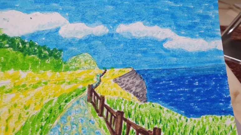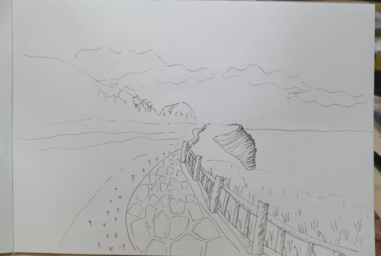 오늘도 제주를 그리다 - 네 번째 드로잉은 송악산 송악산을 여유롭게 걸으며 한걸음마다 변하는 바다와 산을 보며, 나의 삶 또한 한 걸음씩 긍정으로 나아가고, 일궈내겠다는 마음이 생기고, 결심이 생겼답니다.