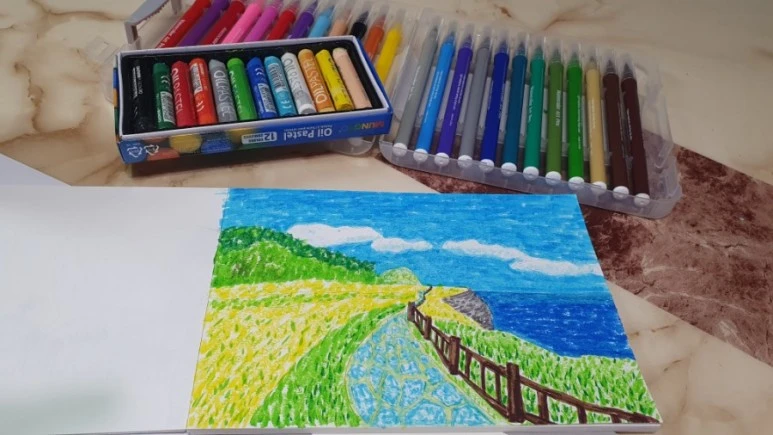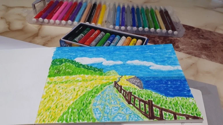 쨍한 색감을 좋아하는데 오일파스텔이 정말 쨍한 느낌을 잘 살려주어 좋네요~!