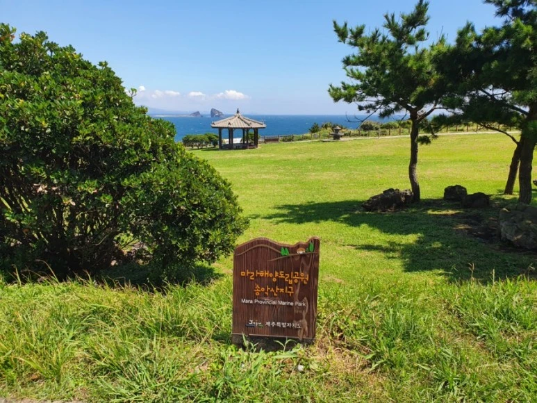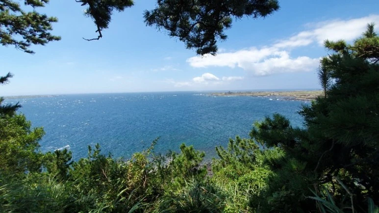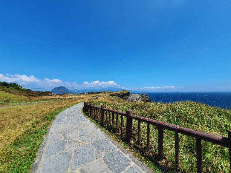 송악산 산책로를 따라 중간쯤 걷다 보면 멀리 마라도와 가파도를 눈에 담아볼 수 있어요.