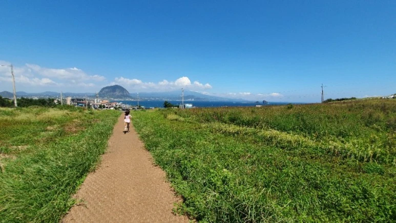 송악산 둘레길을 따라 산책하는 코스 중에서 정말 가장 아름다운 곳은 바로 이곳이에요~! 걷기 시작해서 가장 높은 오르막길을 올랐다가 살짝 내리막기로 접어드는 곳이에요. 이곳에 서면 망망대해가 눈앞에 펼쳐져 있고 나 외에는 나를 가로막고 있는 장벽도, 문제도 없는 평온하고 아름다운 곳이랍니다.