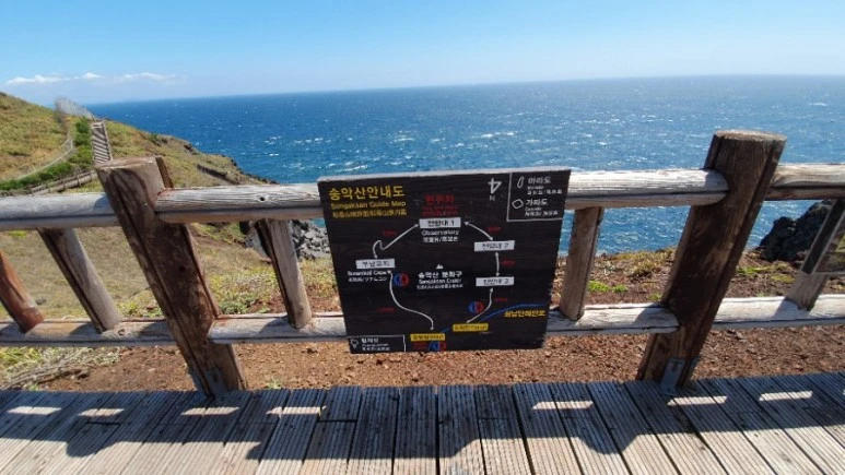 송악산을 오르기 전에 볼 수 있는 바다와 하늘은 당연히 아름답지만, 송악산 산책로를 따라 오르면서 한 걸음씩 나아갈 때마다 시시각각 변하는 바다와 하늘은 더욱더 아름다웠어요.