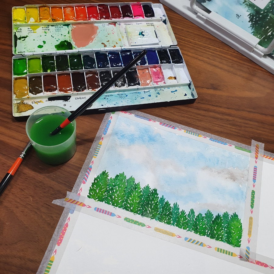 자연의 선들과 색은 단조로운 선 몇 개와 몇 가지 색만으로도 표현이 가능하지만... 사람의 형체는 단순하게 표현하기도 어렵고 특히나 인물들의 얼굴 표정은 정말 어렵더라고요.