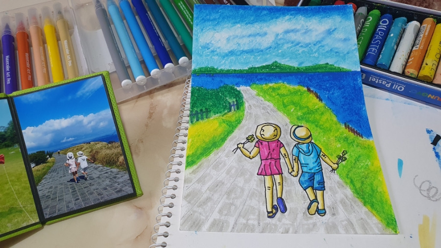 아름다운 마라도만큼이나 아름다운 우애를 보여주었던 아이들이 너무나도 이뻐서 그림으로 담으려고 노력했던 적이 있어요.