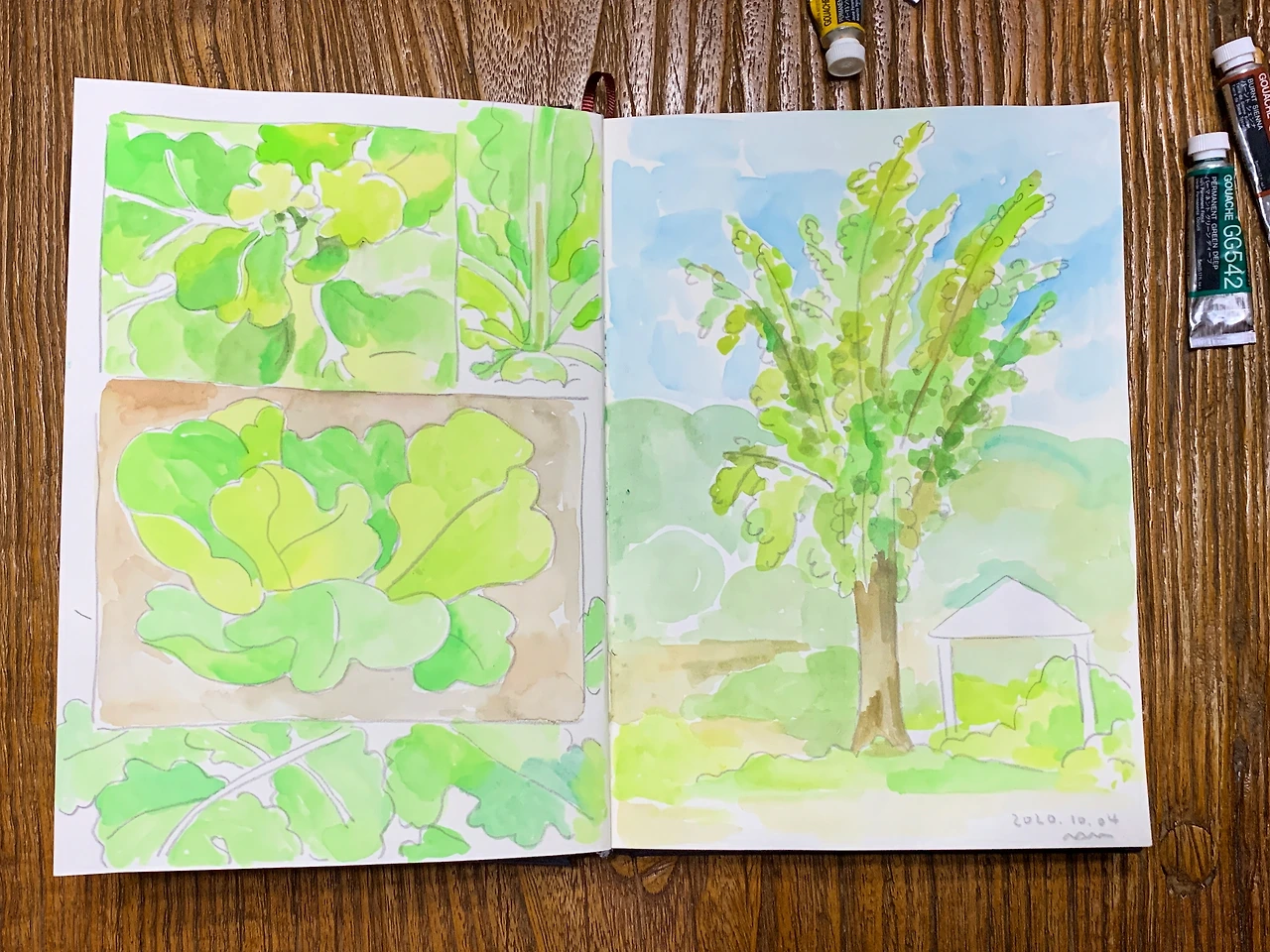 연필과 붓으로 드로잉북에 옮겨놓은 텃밭의 풍경을 보니
