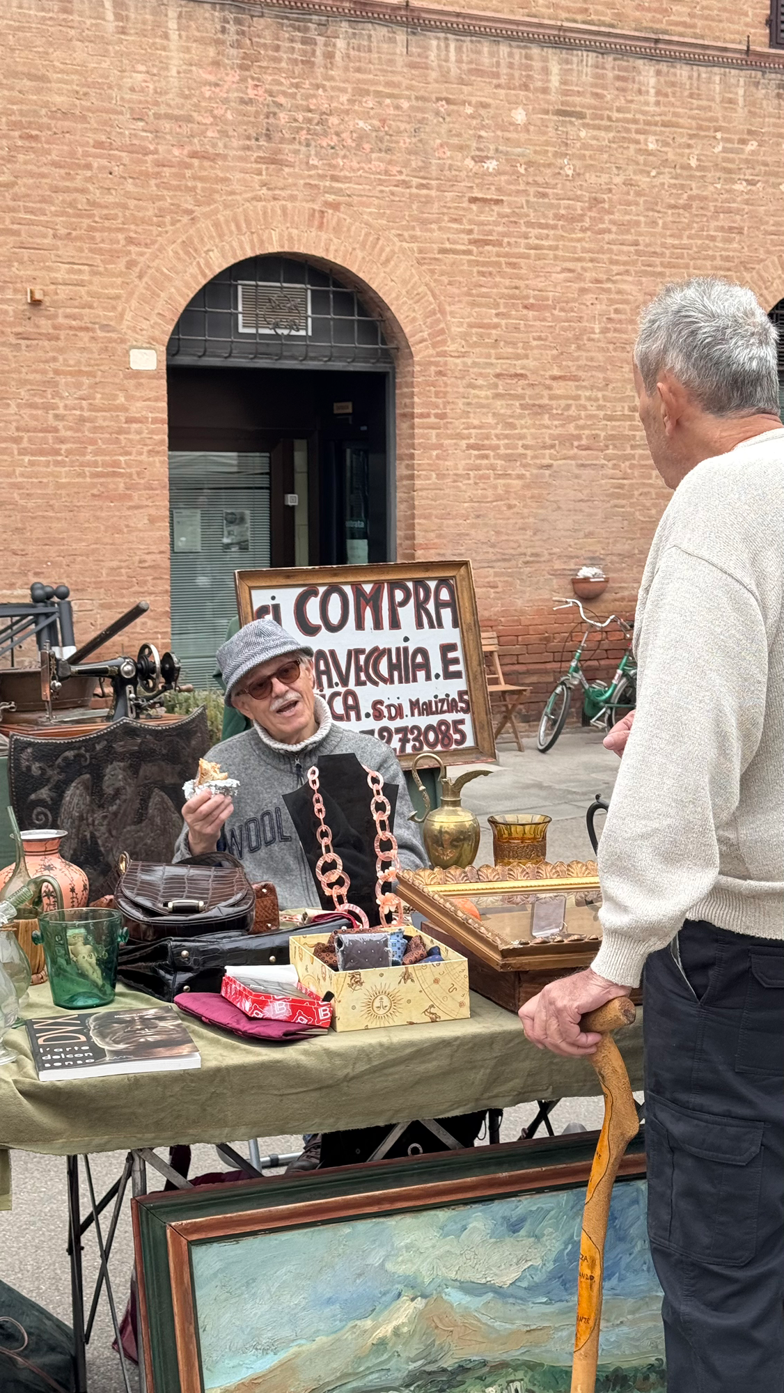 Buonconvento 마을로 들어서니 조그만 장터가 열려있다. 조금 구경하다가 바에 들려 이른 점심을 먹는다.