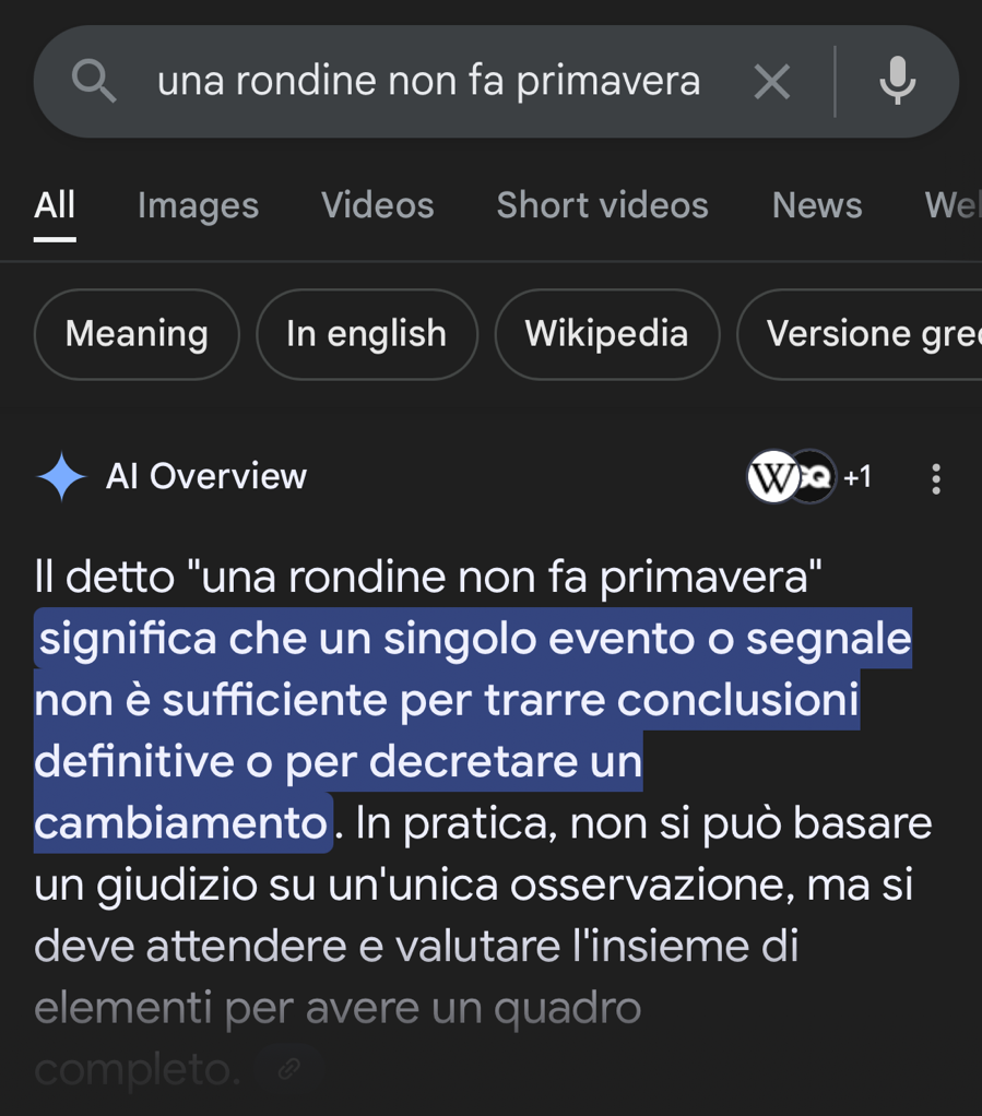 출발하는데 제비가 날아다닌다. 마르게리타가 이탈리아어 속담을 알려준다. 한 마리의 제비가 봄을 만들지는 않는다. 한 가지 긍정적 신호가 긍정적 결과를 불러오는 건 아니라는 뜻.