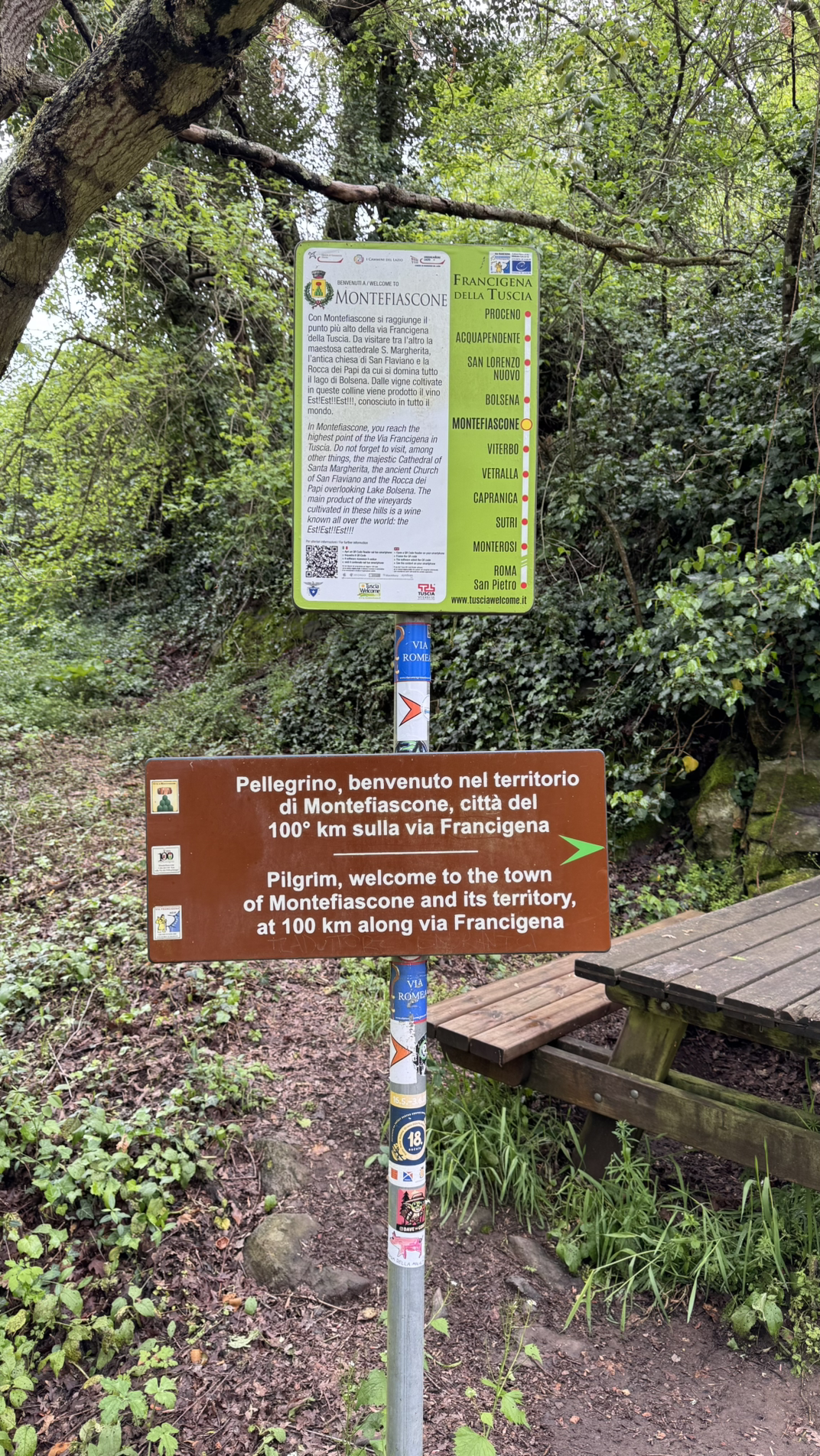 볼세나부터 뭔가 느낌이 다르다. 관광객들이라고 해야 하나 로마까지 걷는 순례자들은 아닌데 볼세나 근처 트레킹하는 무리들이 많이 보인다. 자연 풍경은 아름다웠다. 빽빽한 초록 나무들.. 마르게리타가 산림욕에 관심이 있길래 산림욕에 관한 이야기를 했다.