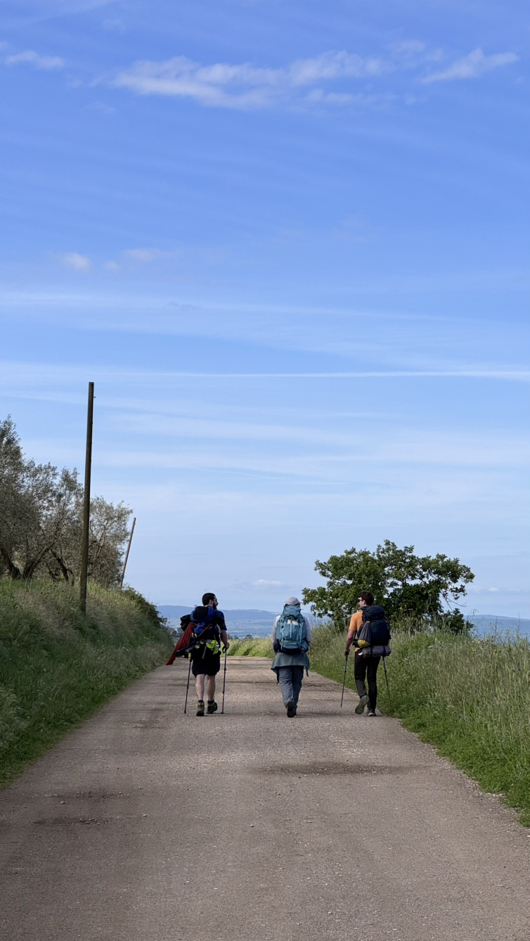친구들을 만났다. 커피 마시러 가자. 친구들은 나보다 좀 더 전 마을부터 시작해 이미 지쳐있었다. 느긋히 충전을 하며 시간을 같이 보내고 비테르보에서 산마르티노로 나가는 문인 포르타 로마나까지 마중을 간다. 갑자기 비가 말도 안 되게 쏟아붓기 시작한다. 이번 4월의 이탈리아는 정말 말도 안 되게 변덕스러운 날씨였다. 그래서 걷기에 더 고생했는데 생각해 보면 이래서 더 기억에 남은 것 같다.