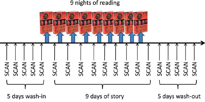 2013년 미국 에모리대 신경연구센터의 그레고리 번즈(Gregory S. Berns) 교수는 국제 학술지 ‘Brain Connectivity’에 소설이 뇌 연결성에 미치는 단기, 장기 효과에 대한 논문*을 발표했다. 그레고리 번즈 교수와 연구진은 대학생 12명을 대상으로 첫 번째 5일은 뇌가 휴식을 취하는 상태에서 fMRI(기능성 자기공명 영상)를 촬영했다. (fMRI의 원리는 뇌의 특정 부위가 작동하면 그 부위로 피가 이동하게 되어 영상에서 불이 켜지는 것처럼 밝아지게 된다.) 그런 후 다음 실험으로 소설책 『폼페이』(로버트 해리슨 저)를 매일 저녁 30페이지씩 읽게 하였다. 다음 날 아침 대학생들은 fMRI 촬영을 하였고, 이 과정을 9일간 반복하게 하였다. 마지막 실험은 소설을 읽지 않은 상태에서 5일 동안 아침마다 뇌를 촬영하였다.