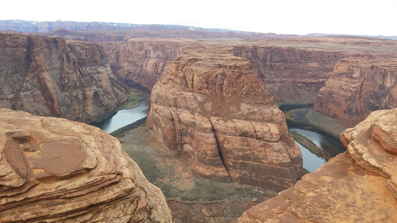 물이 보이는 사진은 실제 전화기 사진으로 잘 표현이 못됐는데 무지하게 깊은 계곡임. 아래 콜로라도강은 이곳을 둘러 그랜드 캐년으로 흘러들어간다. 왼쪽 뒤편이 그랜드 캐년.