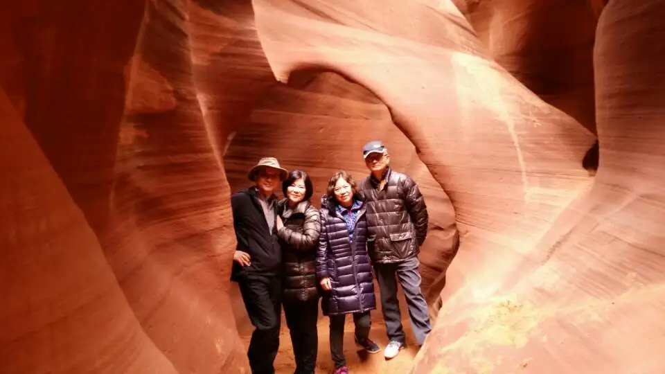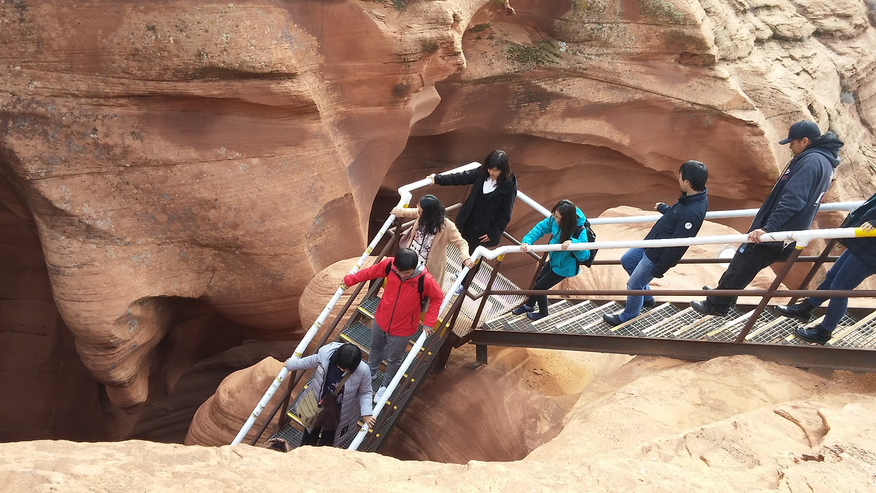 지하 40미터 공간에 새겨진 억만 겁의 흔적들. 정말 신기할 따름이었다. 내려갈 때 약간 위험하긴 했지만 내부 공간은 위가 뚫려있어서 숨 쉬는대는 지장이 없었다. 등장인물 네 명은 이번 원정대의 총원. 왼쪽부터 손위 동서네와 우리 부부. 가이드는 인디언이었는데 약간의 한국말을 하곤 했다. 중국인들이 큰 무리가 어딜 가나 발견됐다.
