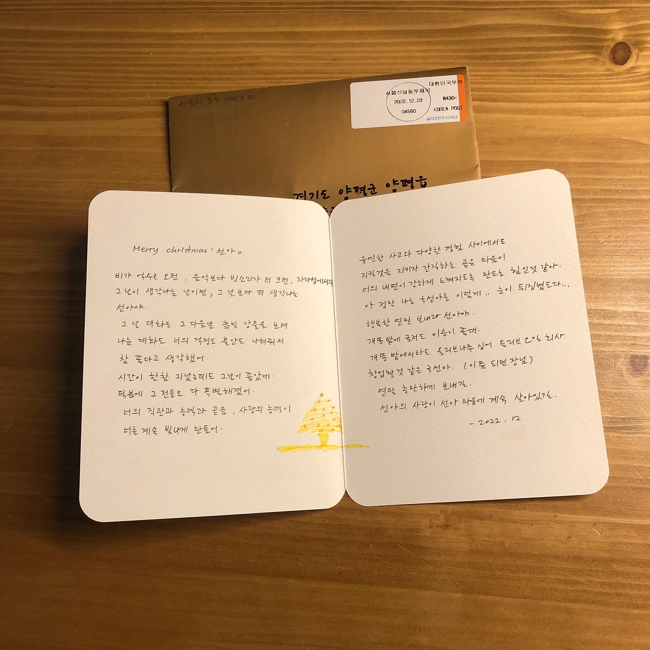 누군가에게 막힘없이 써 내려간 20줄의 글이 되었다는 것으로 올해는 다 되었다. 가장 좋았던 구절은 행간 행간 보이지 않게 채워진 사랑한다는 말. 두 번째로 좋았던 구절은 눈이 뒤집혔다는 말. 파티도 여행도 없이 조용히 보내는 연말이지만 이런 난데 누가 부럽겠니.