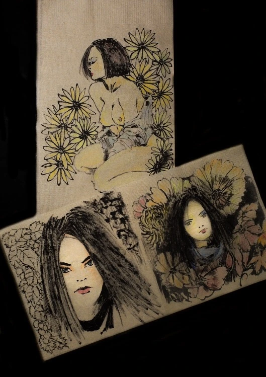 냅킨 위에 그림은 잉크와 물감의 번짐이 멋스럽다.