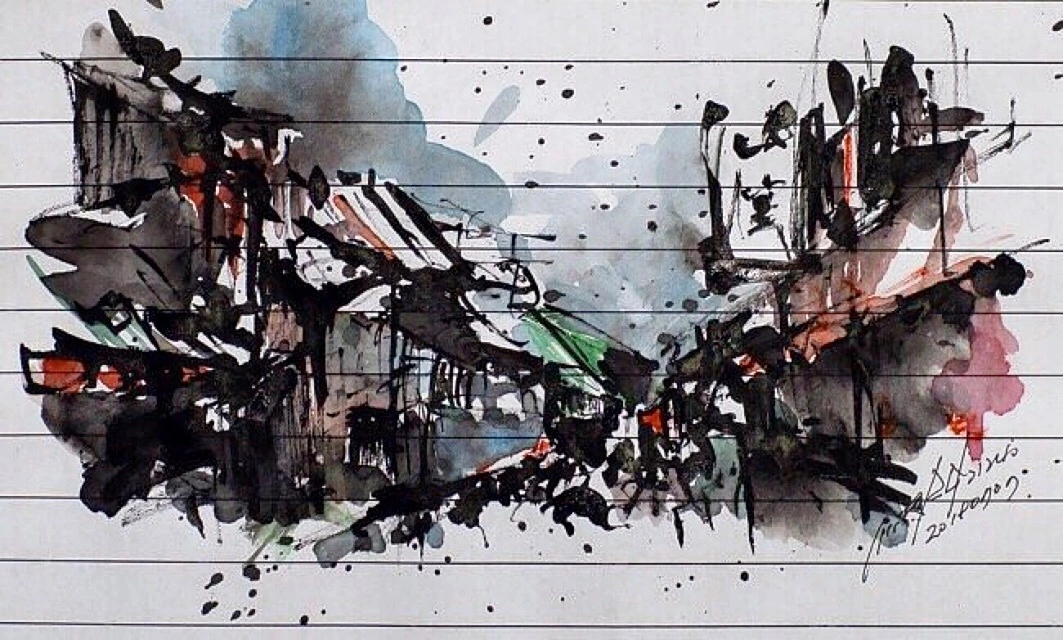나무젓가락, 대나무, 성냥이 붓을 대신한다.