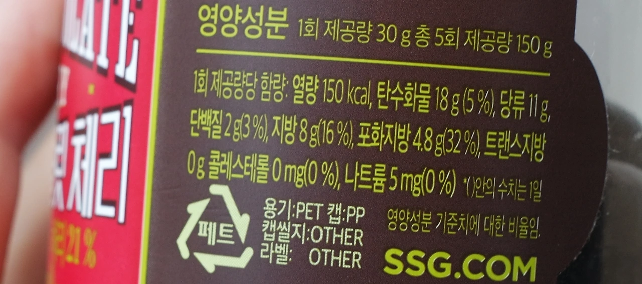 초콜릿 통에는 당연하게도 초콜릿이 가득 담겨있었다. 몇 개나 들어있는지는 모르겠지만 꽤나 많은 양이라는 생각이 들었다. 뒤를 보니 총 5회 제공 량 이라고 되어있었다. 야금야금 먹다보니 벌써 3분의 1을 먹은 것 같았다. 아니 분명 5회 제공 량 이었는데, 하고 깨닫자마자 그만큼이 사라진 것이다. 보기 전 까지는 그냥 먹으면 먹지 뭐, 하는 심정이었건만 그놈의 5회 제공 량 때문에 왠지 더 먹으면 안 될 것 같아서 짜증이 났다. 사실 겉의 초콜릿 보다 속에 들어있는 체리만 쏙 빼 먹고 싶었지만 당연히도 불가능했기 때문에 더욱 짜증이 치솟은 것도 있다. 그렇게 정신을 차려 보니 반 정도가 사라지고 없었다. 망할.