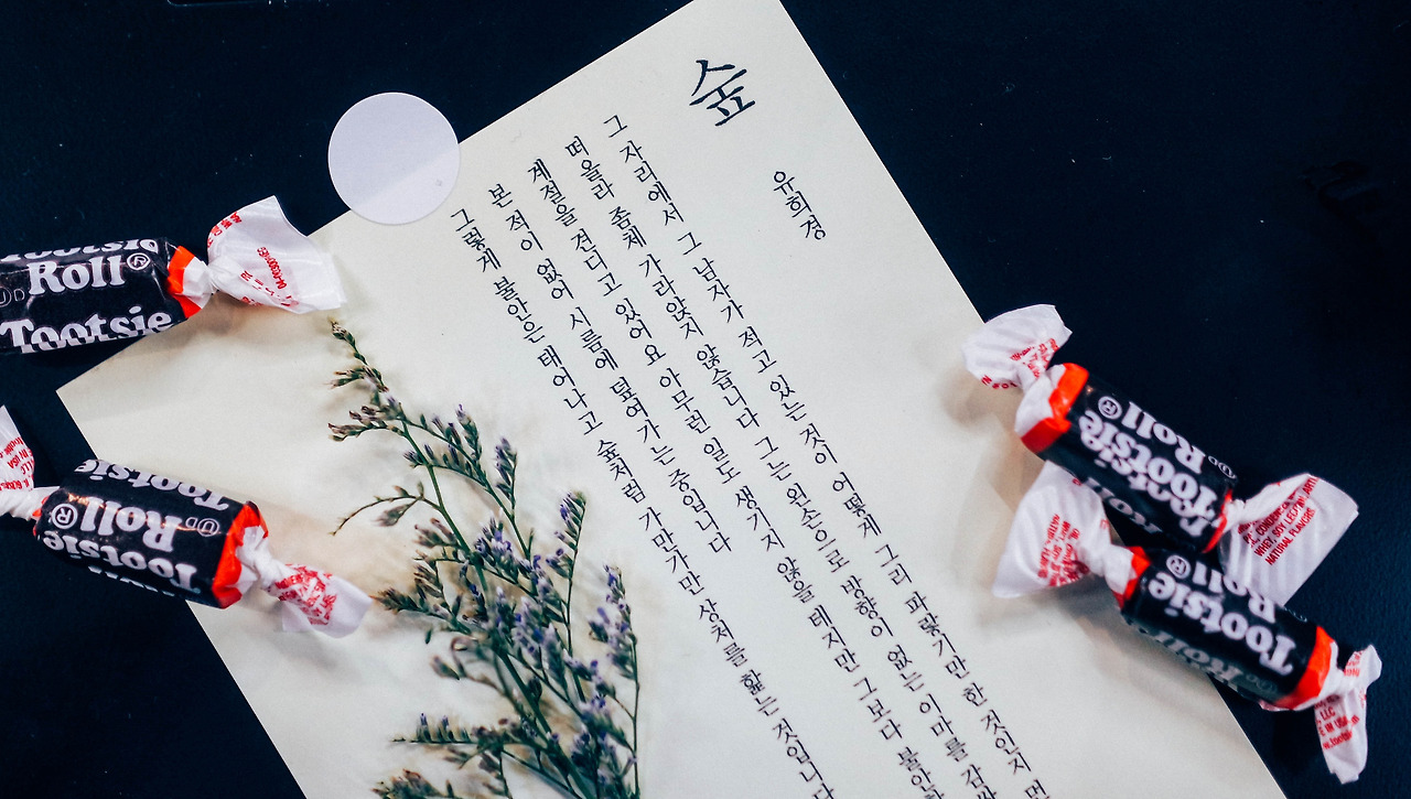 들어가자마자 출석 서명을 한 뒤, 드라이플라워를 붙인 엽서를 하나씩 떼어가라고 했다. 정갈하게 적힌 시와 아기자기한 드라이플라워가 참 잘 어울렸다.