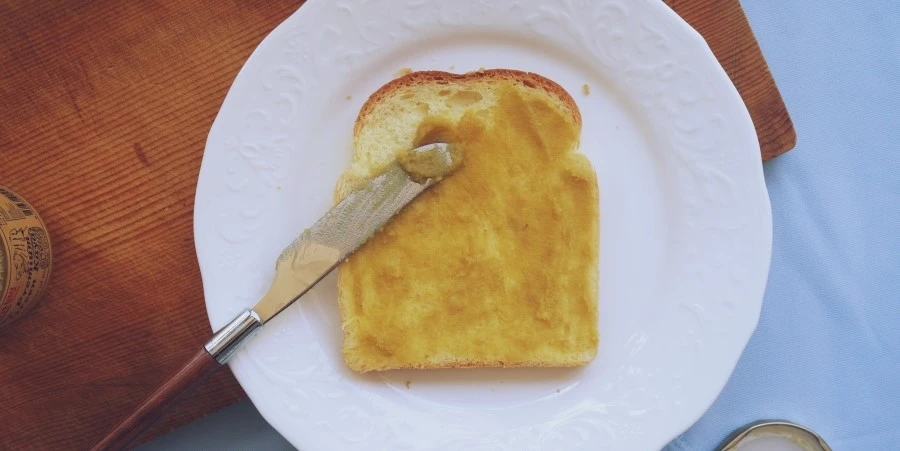 식빵 가루가 떨어지지 않도록 쟁반이나 접시를 받친 뒤, 카야잼을 골고루 펴 발라준다. 단맛을 좋아하면 두껍게 펴 바른다. 카야잼이 달달하기 때문에 카야잼의 양으로 단 정도를 조절할 수 있다. 차가운 상태로 맛 보면 살짝 이상하다고 느낄지도 모른다. 그러나 전자레인지와 함께라면 최고의 맛을 선사한다.