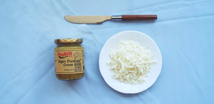치즈는 기호에 따라 양을 조절하여 올린다. 단, 카야잼이 적게 발렸다면 치즈도 많이 올리지 말 것. 치즈의 풍미에 묻혀 카야잼의 풍미가 옅어진다.