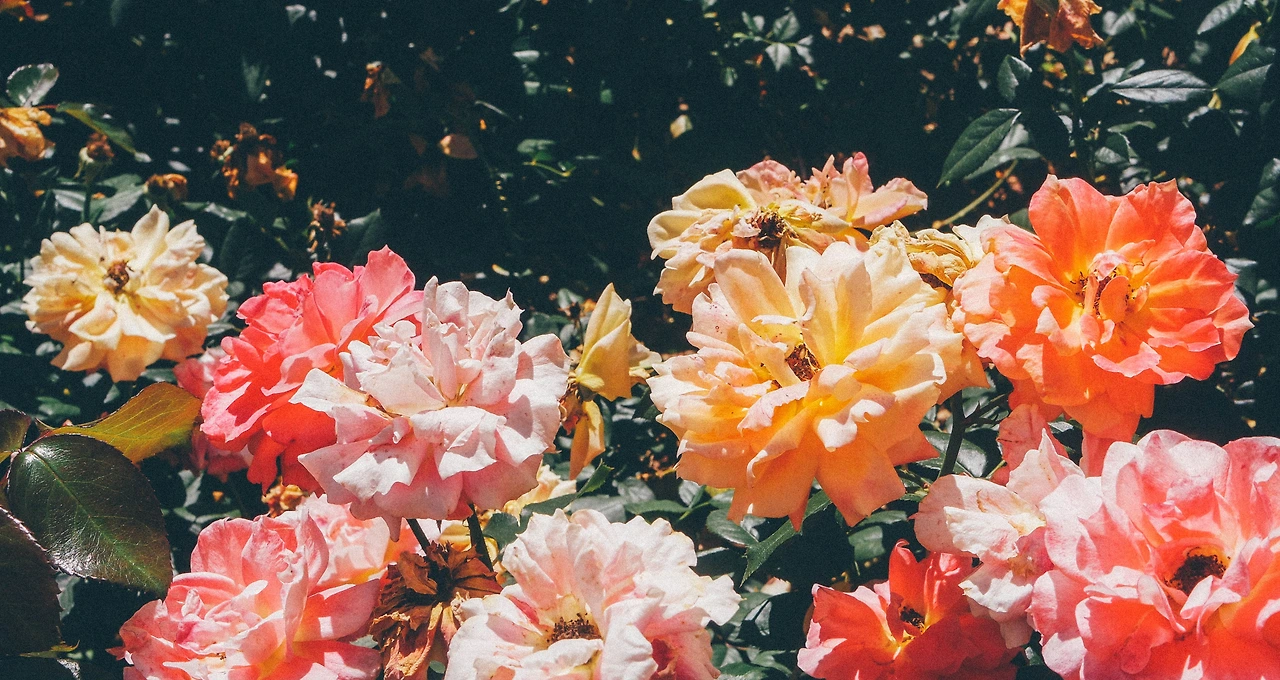 모양은 조금 덜 예쁘지만, 색감이 다채로워 예쁜 장미들. 옅은 노란색부터 코랄까지 따듯하고 아름다운 느낌이 드는 장미들이 가득이다. 그래서일까 영상미가 예쁘다는 고전 영화들을 보면 으레 그렇듯 장미가 나오곤 한다.