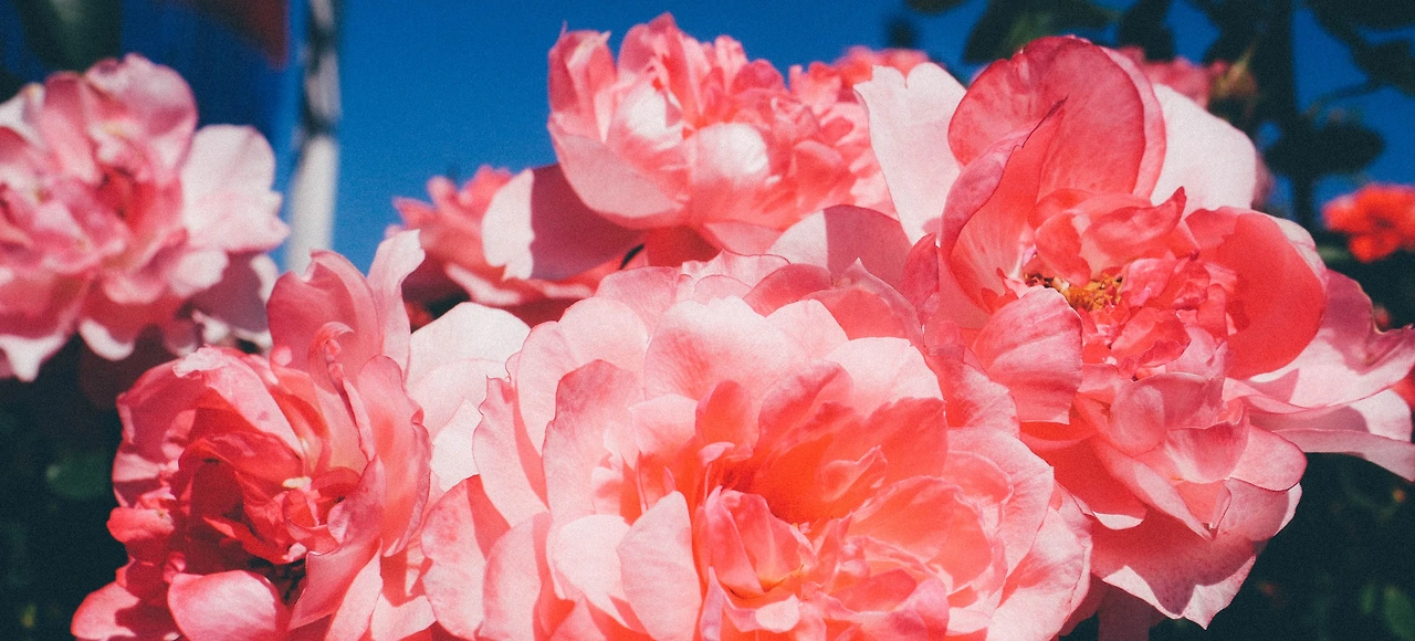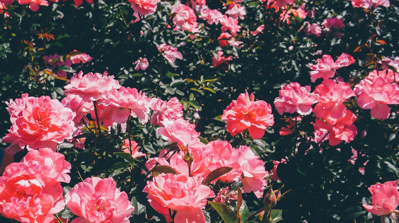 해가 점점 더 쨍쨍해지고, 빛을 받은 장미들은 더욱 생생하게 피어난다.