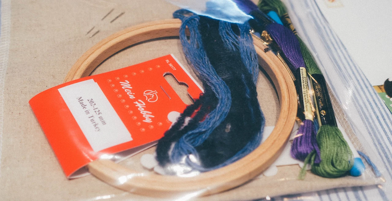 적은 비용인 5천 원을 내고 참가했지만, 구성품은 초라하지 않았다. 세 가지 색의 실과 실패, 바늘과 끈, 천에 수 틀까지, 정말 제대로 바느질을 해 볼 수 있겠다고 생각했다.