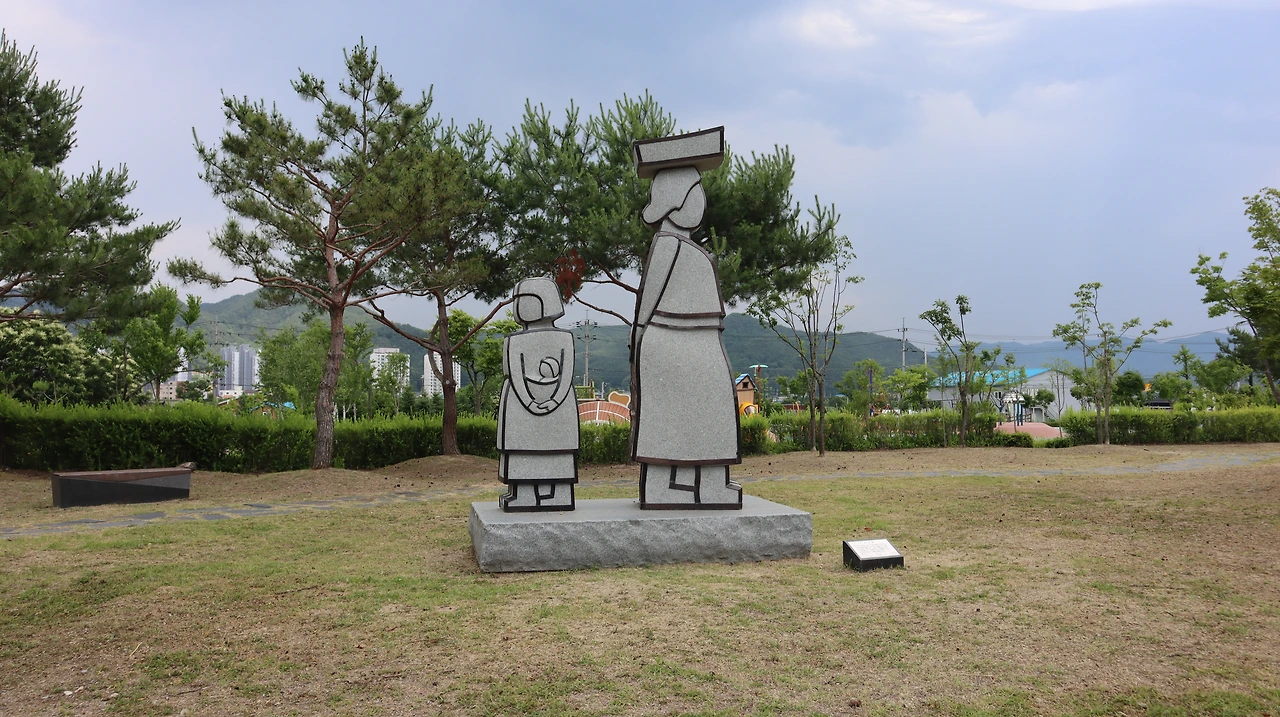 미술관 정원의 조형물. 아기업은 소녀
