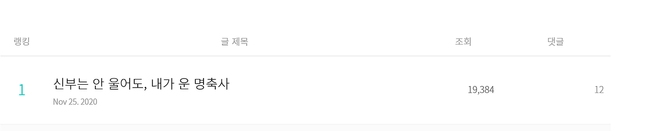 일년에 몇번은 브런치를 찾아 글을 쓰진않아도 글의 통계는 보곤 했다. 언제나 부동의 1위를 차지하고 있는 글은 "명축사" 글이다. 심지어 작년 12월에도 라이킷을 눌러주신 분이 있었다. ( 너무 감사하다 ㅎ) 2월에 정말 이제는 몇 남지않은 가까운 지인이 결혼한다. 축사는 아니지만, 부케는 받을지도 모르겠다. 바야흐로, 브런치에 명축사 만큼의 임팩트 있는 글을 하나 써야할 시점인가 싶지만, 이건 과욕인 것을 잘 알고 있다. 마음을 꾹꾹 담아, 사적인 축사나 작성해볼까 싶다. 올 한해, 언제나 나에게 정겨운 친구에게 안부인사를 자주 남길 수 있는 한 해가 되길!