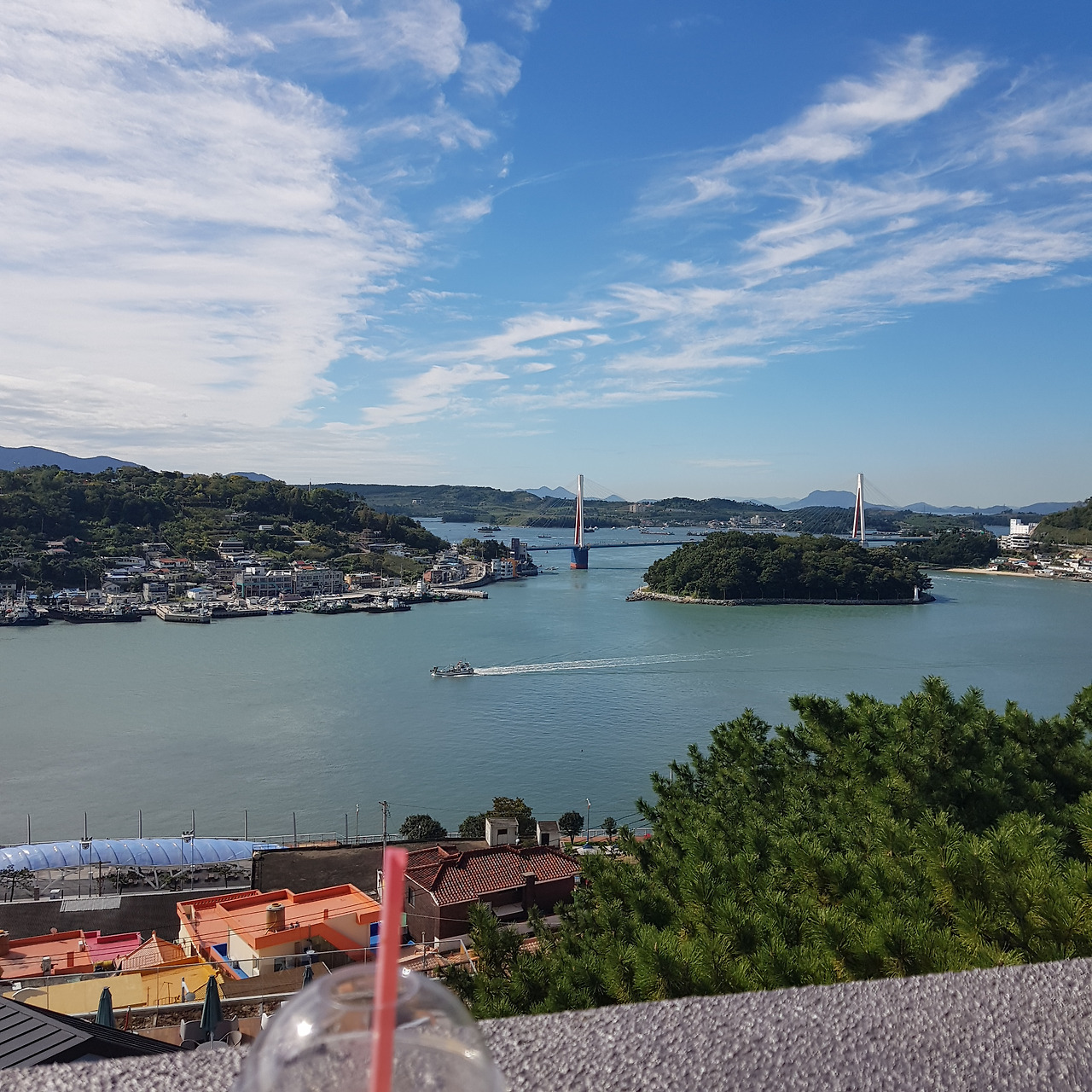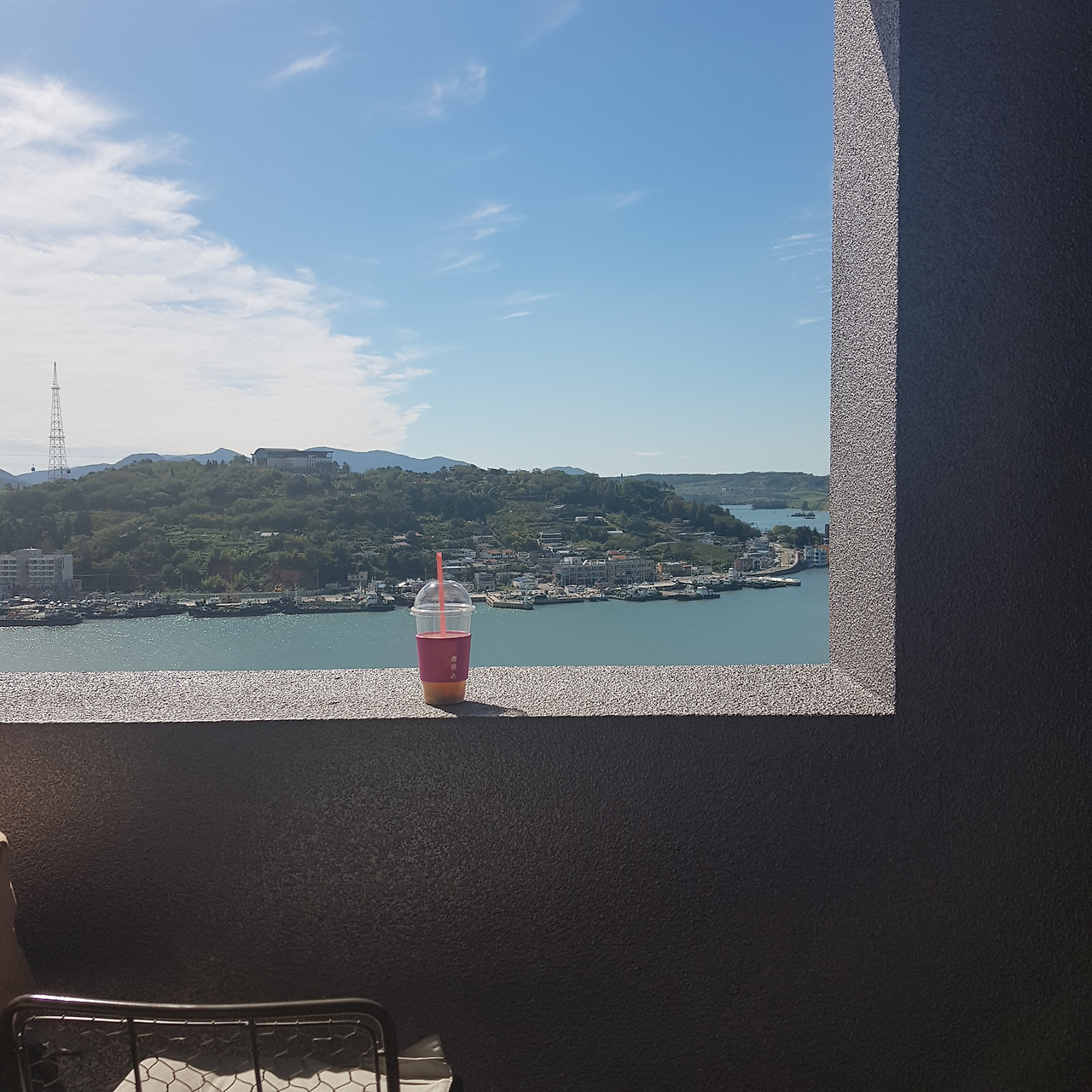 루프탑에 올라 큰 창가에 자리를 잡고 멍을 때렸다. 운 좋게도 이 넓은 공간에 나 혼자다. 바닷내음과 시원한 가을 바람. 어제의 흐린 날씨가 기억나지 않을 정도로 맑게 개인 푸른 하늘이 내 앞에 있다.