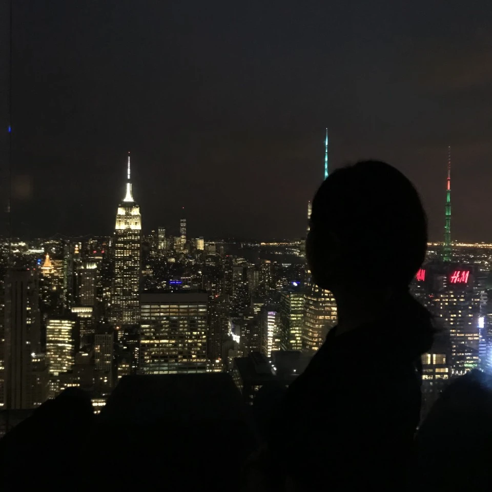 다른 날, 록펠러 센터의 탑 오브 더 락에서 보았던 야경 역시 멋졌다. 이때는 동행과 함께 였기 때문에 서로 사진을 왕창 찍어줄 수 있었다. 여행을 하며 뜻밖의 사람과 인연이 된다는 것은 정말이지, 특별한 일이다. 7시에 올라갔기 때문에 조금 늦진 않을까 걱정했지만 의지의 한국인은 노을 지는 저녁 하늘부터 깜깜 해지는 밤하늘까지 모두 앞자리를 사수하며 볼 수 있었다. 가을바람이 불기 시작해 쌀쌀했음에도 까만 밤까지 탑 오브 더 락에 남아있는 사람은 한국 사람들뿐이었다. 못 말리는 한국인들이 왜 이리 반가운지! (뉴욕에서 한국인 관광객을 찾는 게 생각보다 어려웠다. 먼 여행지라 그런지 주로 어린 친구들보다는 삼십 대 언니, 오빠들부터 어머니, 아버지뻘 되는 어른들이 많았다.)