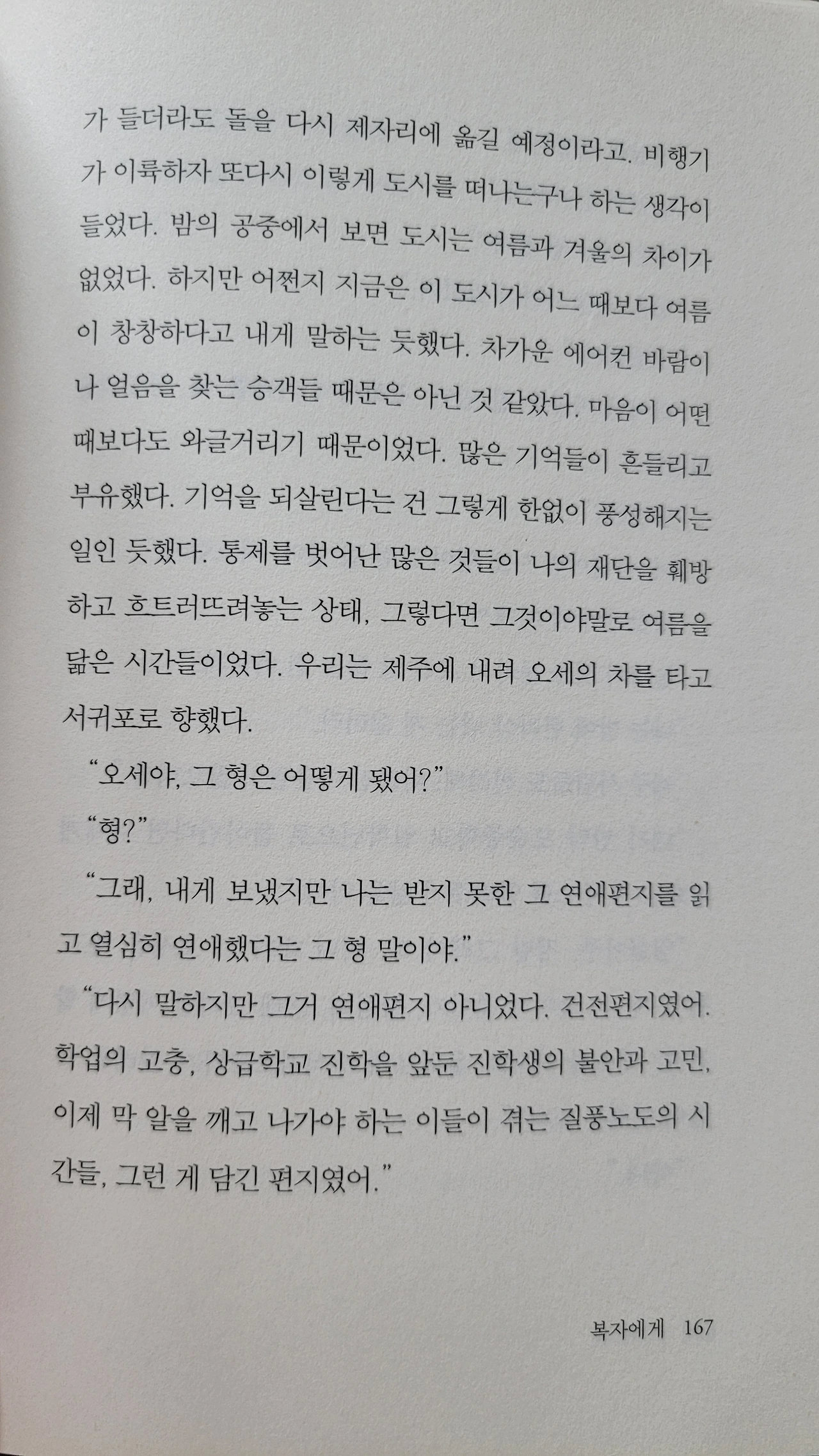 한 권의 책이 아니라 한 편의 삶을 읽었다. 픽션과 논픽션의 직선과 사선의 조합. 클리나멘의 시간을 살고 있는 것은 우리 모두일지도 모른다. 나는 작가의 모든 시선이 마치 클리나멘 같아서 좋았고 위로가 됐다. 고모가, 영초롱이가 있어서 좋았다. 그들의 말들이 지은 '글축물*'이 단단해지길 진심으로 바랐다. 그것은 나를 향한 응원이기도 했다.