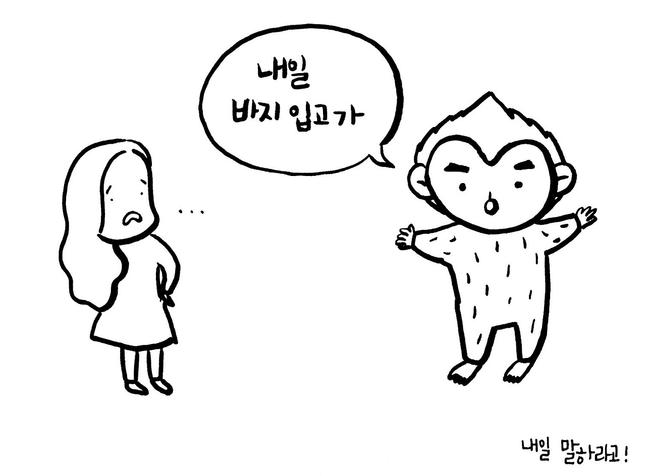 막바로 "내일 바지 입고 가라" 라고 한다.