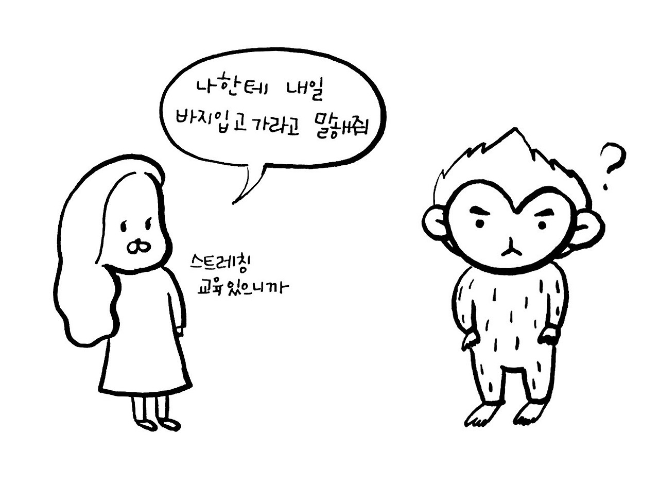 내일 오후에 회사에서 스트레칭 교육이 있다고 바지를 입고 오라고 해서,