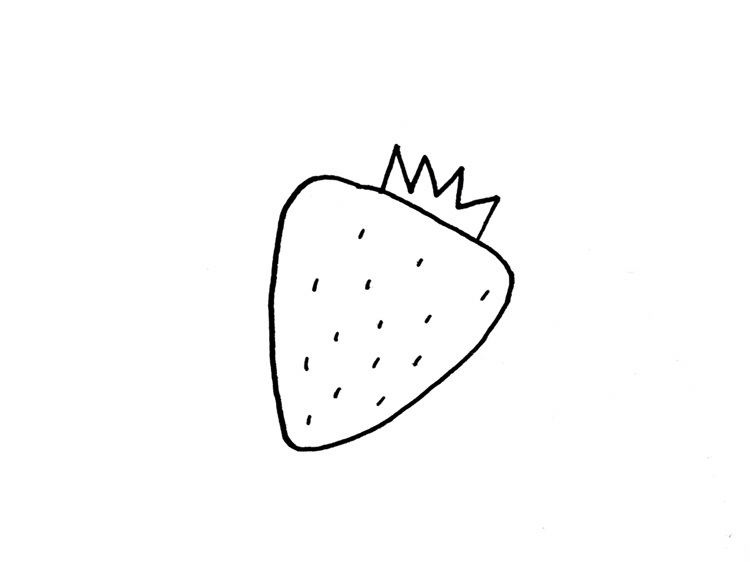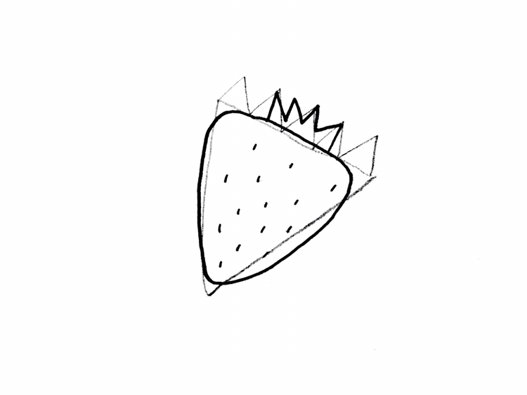 직선을 곡선 처리 하면서 딸기 몸통을 그려주세요.