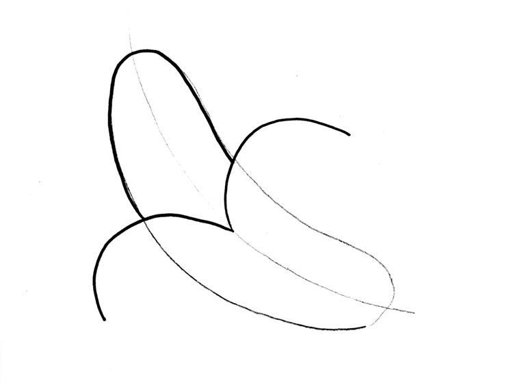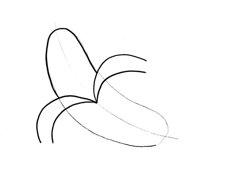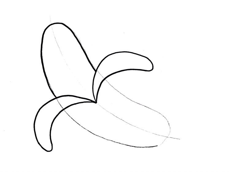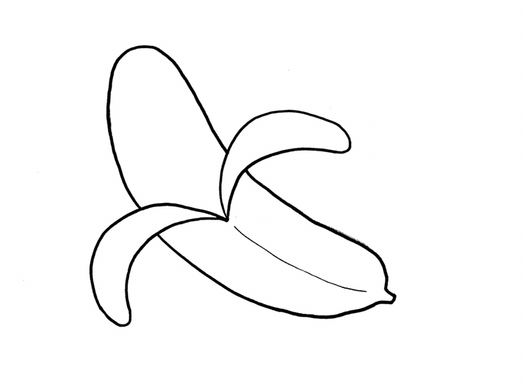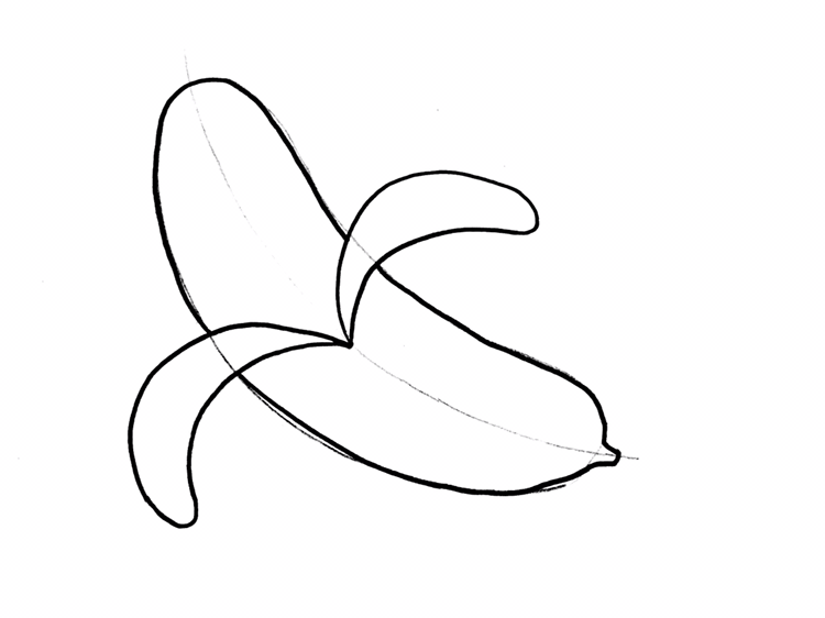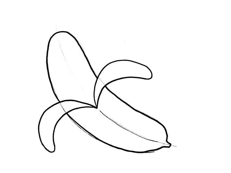 바나나 몸체의 반 정도에 갈매기를 그려주세요