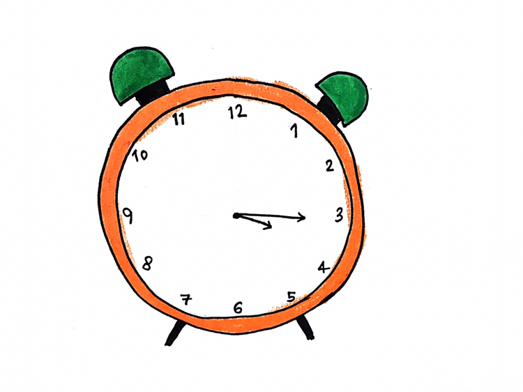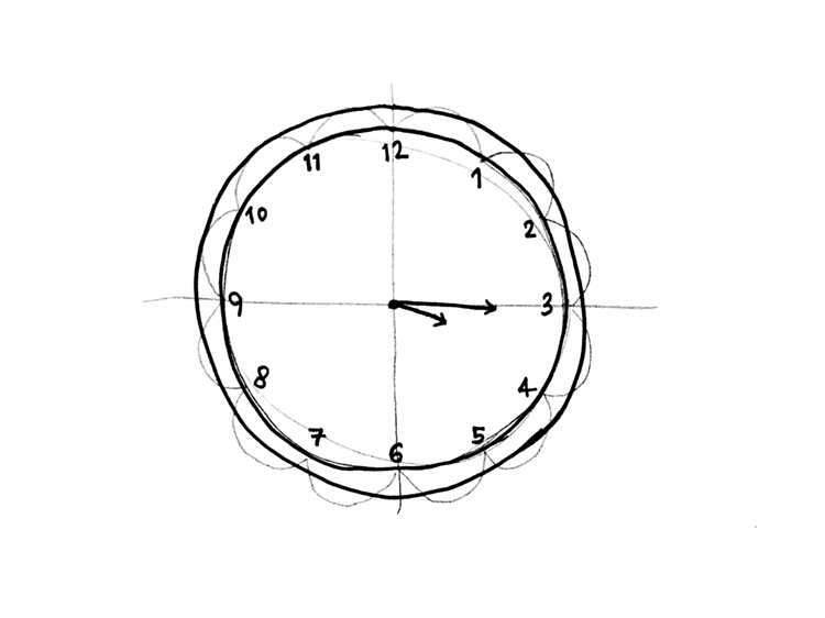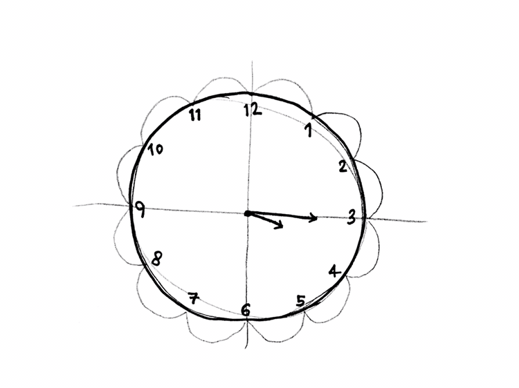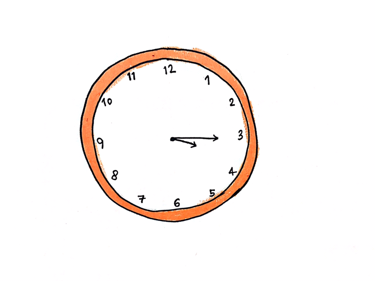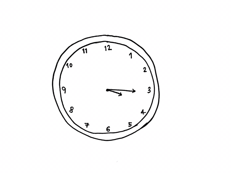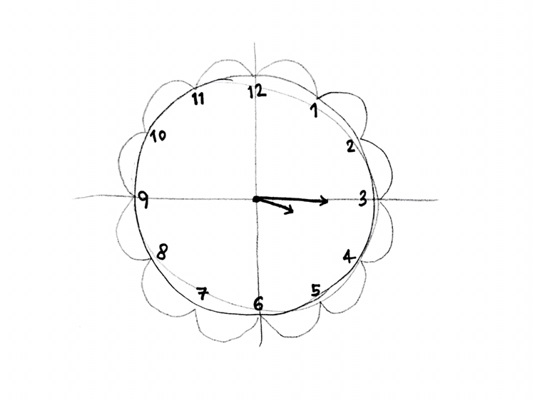 저는 왠지 세시 십오분이 떠올라서, 세시 십오분을 가리키는 시계를 그렸습니다.