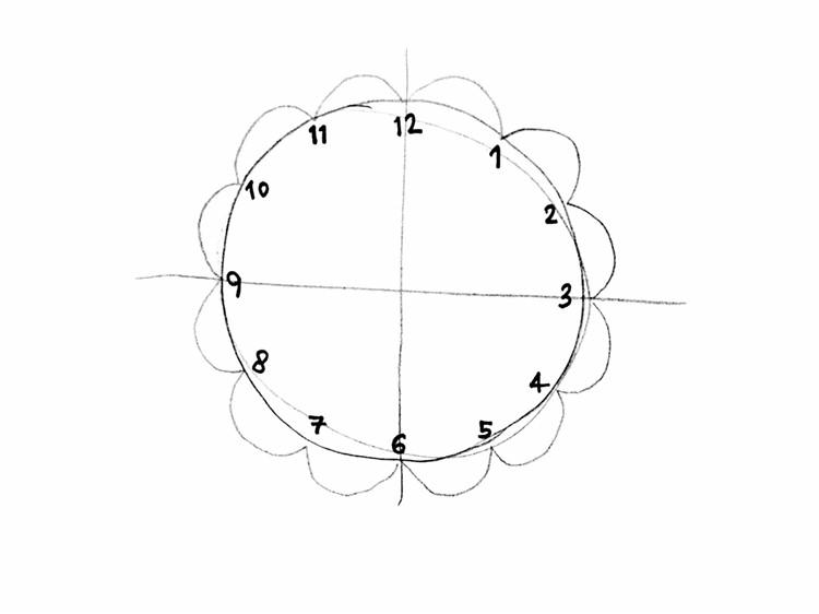 몇 분이냐에 따라 시침은 이동하지요. 그 디테일을 잘 살려서 그려주세요!