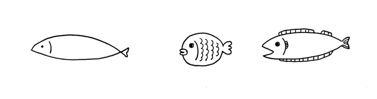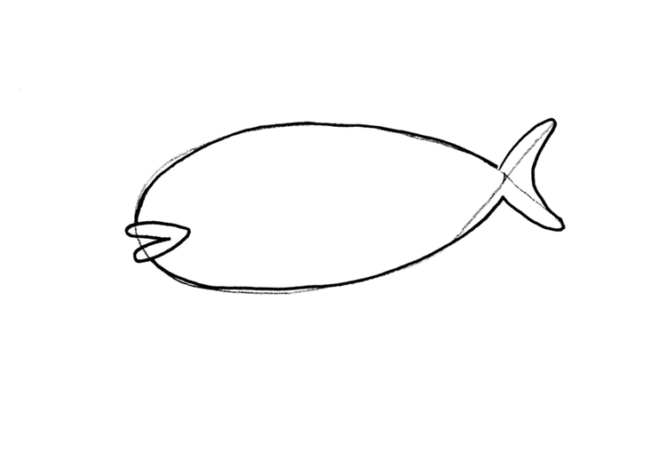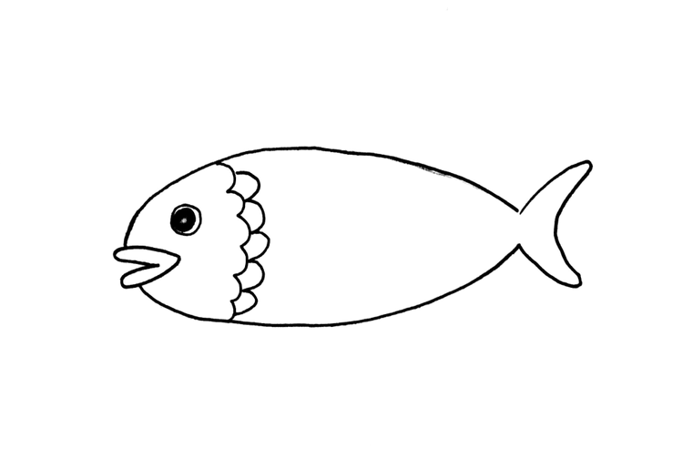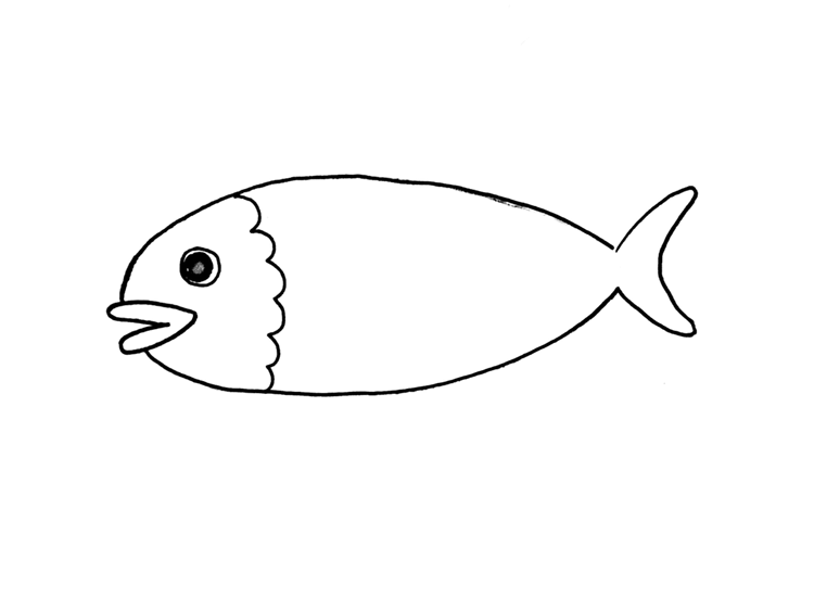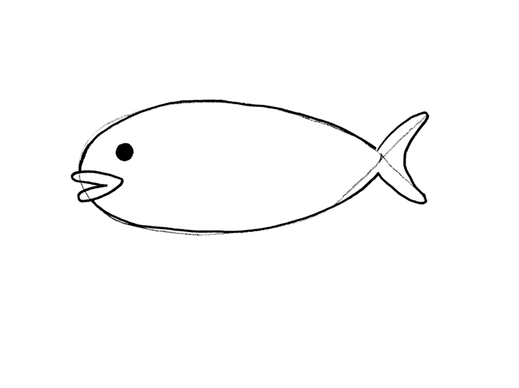 덤, 물고기는 길쭉하게 그리면 더 실제 같고, 생선 같아요.
