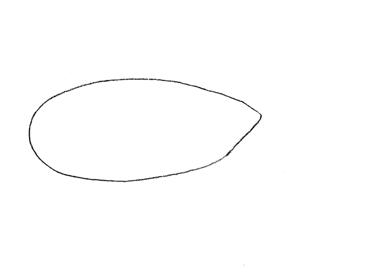 연필로 쌀알 누운 것 같은 모양을 그립니다.