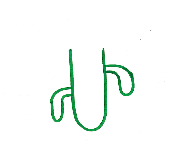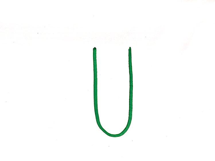 초록 계열의 아무것이나 들고 길쭉한 U를 그려주세요.