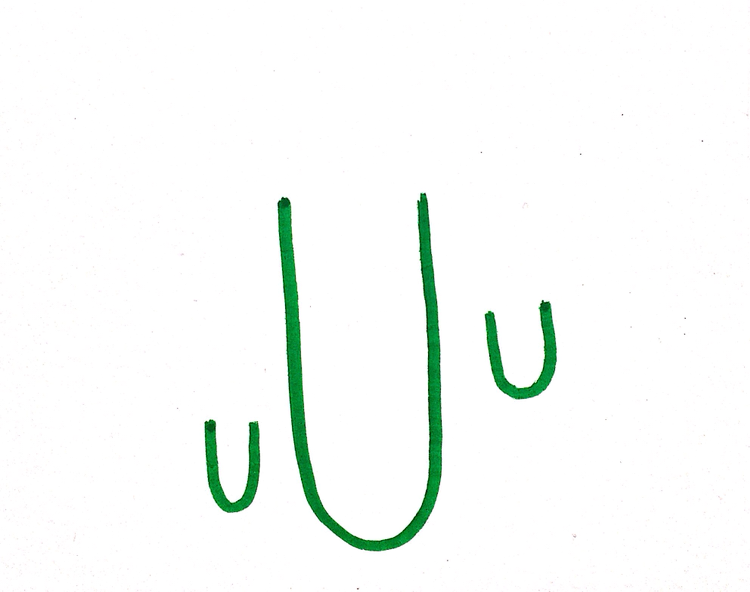 큰 U 양 옆에 약간 다른 높이로 작은 U를 두개 그려주세요.