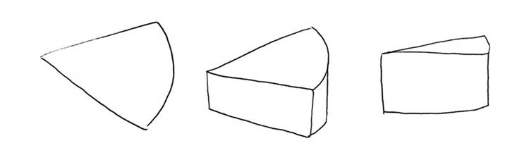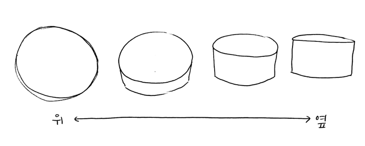 옆모습을 그릴 땐 윗면 도형을 먼저 그리고,