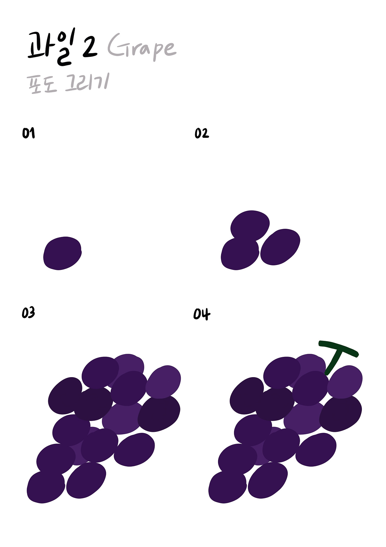 포도는 색깔을 넣어 그려볼게요.