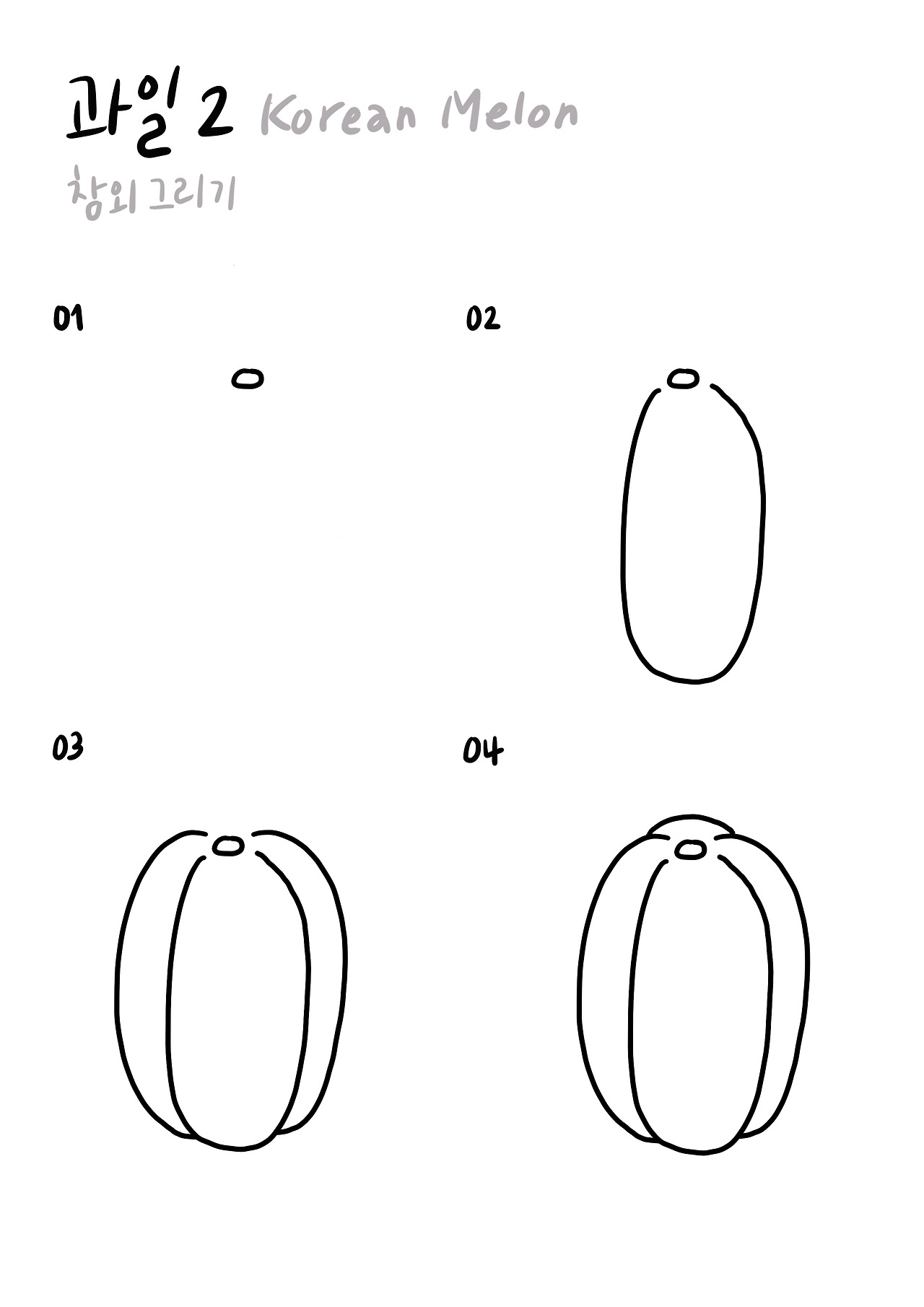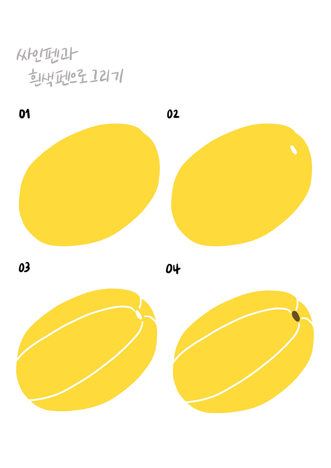노란 색연필 + 흰색 펜을 이용해 더 맛있는 참외를 그려보세요.