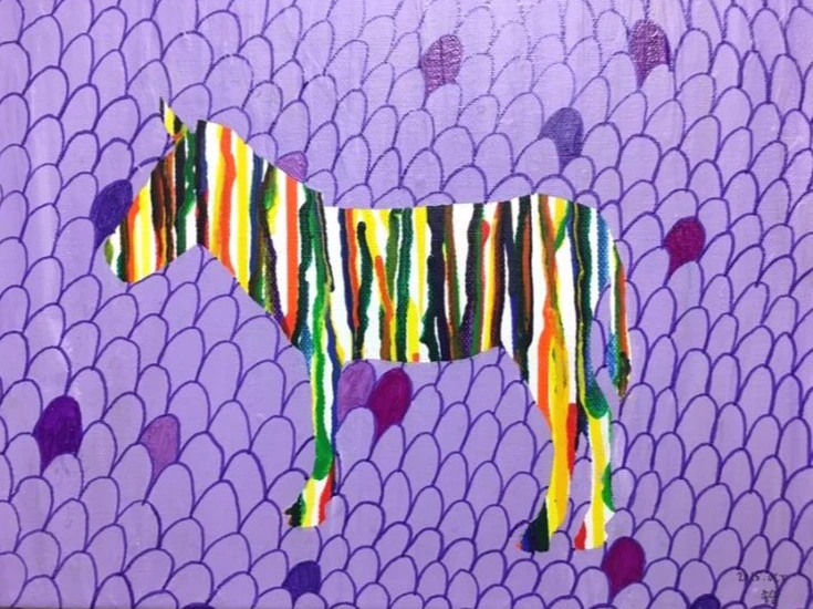 물감을 흐르게 하고, 다 마른뒤에 말의 실루엣을 따라 배경을 칠해주세요~