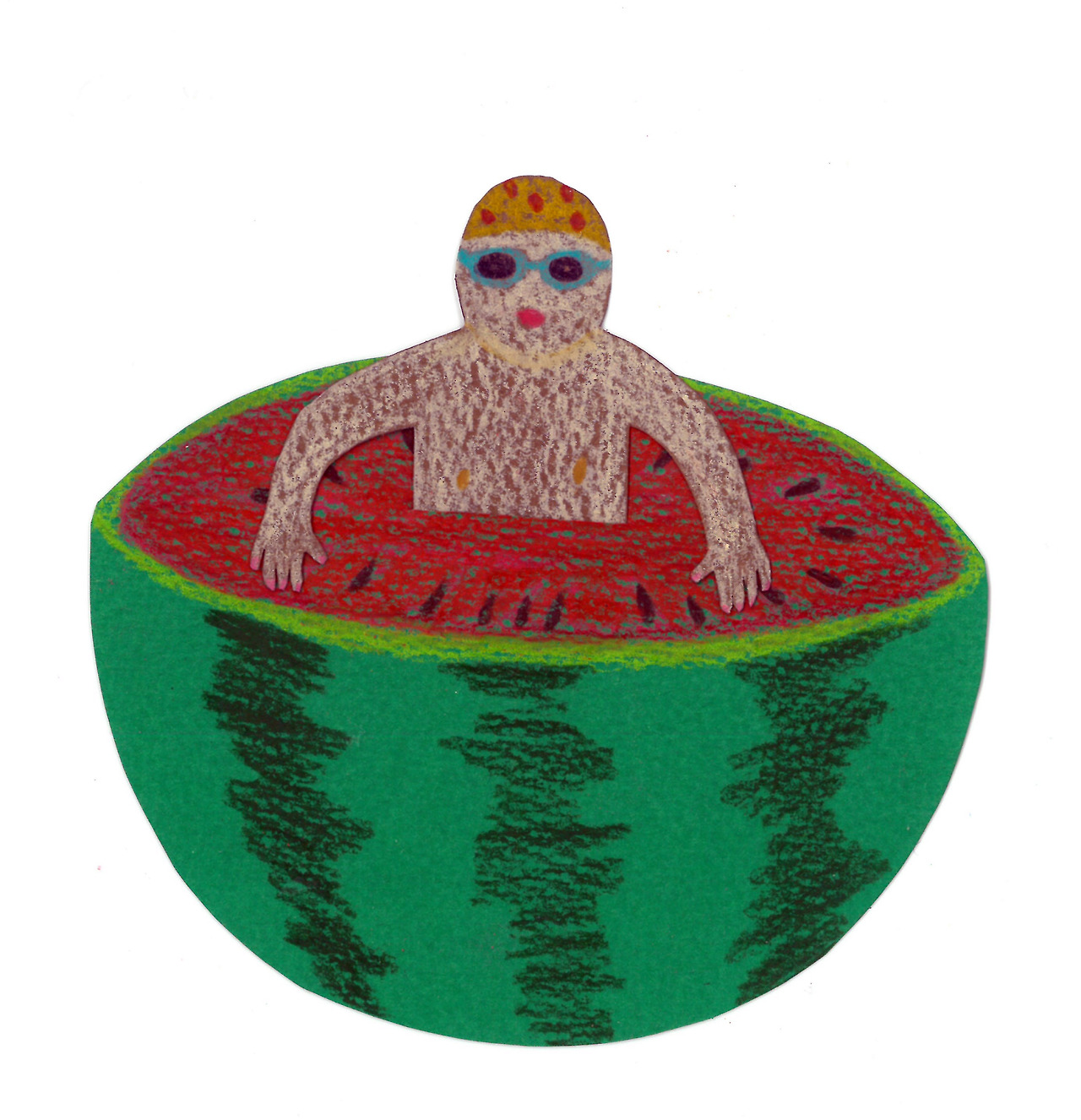It's extremely hot this summer, so I dream of cooling off in a cool watermelon.