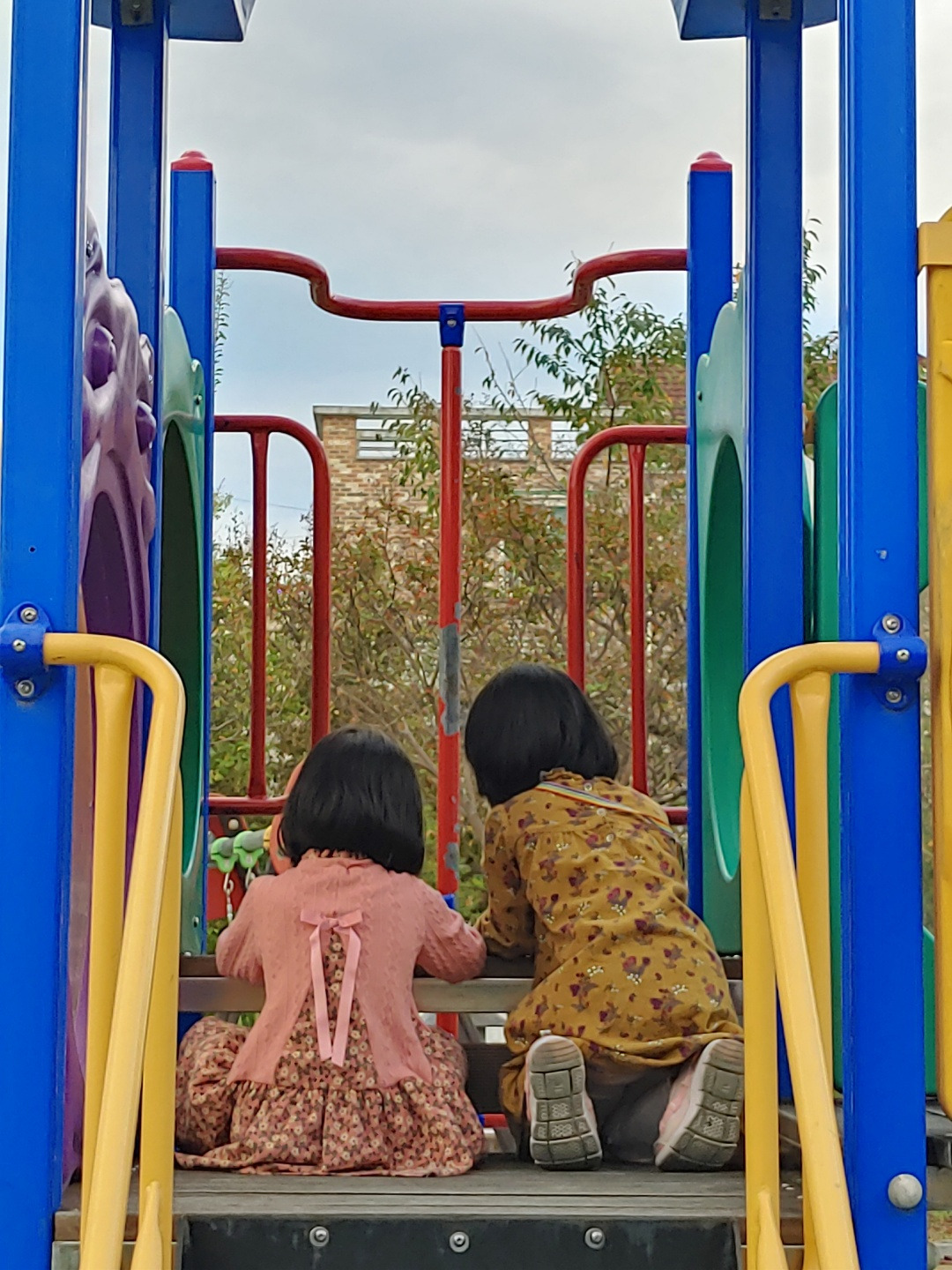 책마루 도서관을 나와 아이들과 놀이터에 갔다.